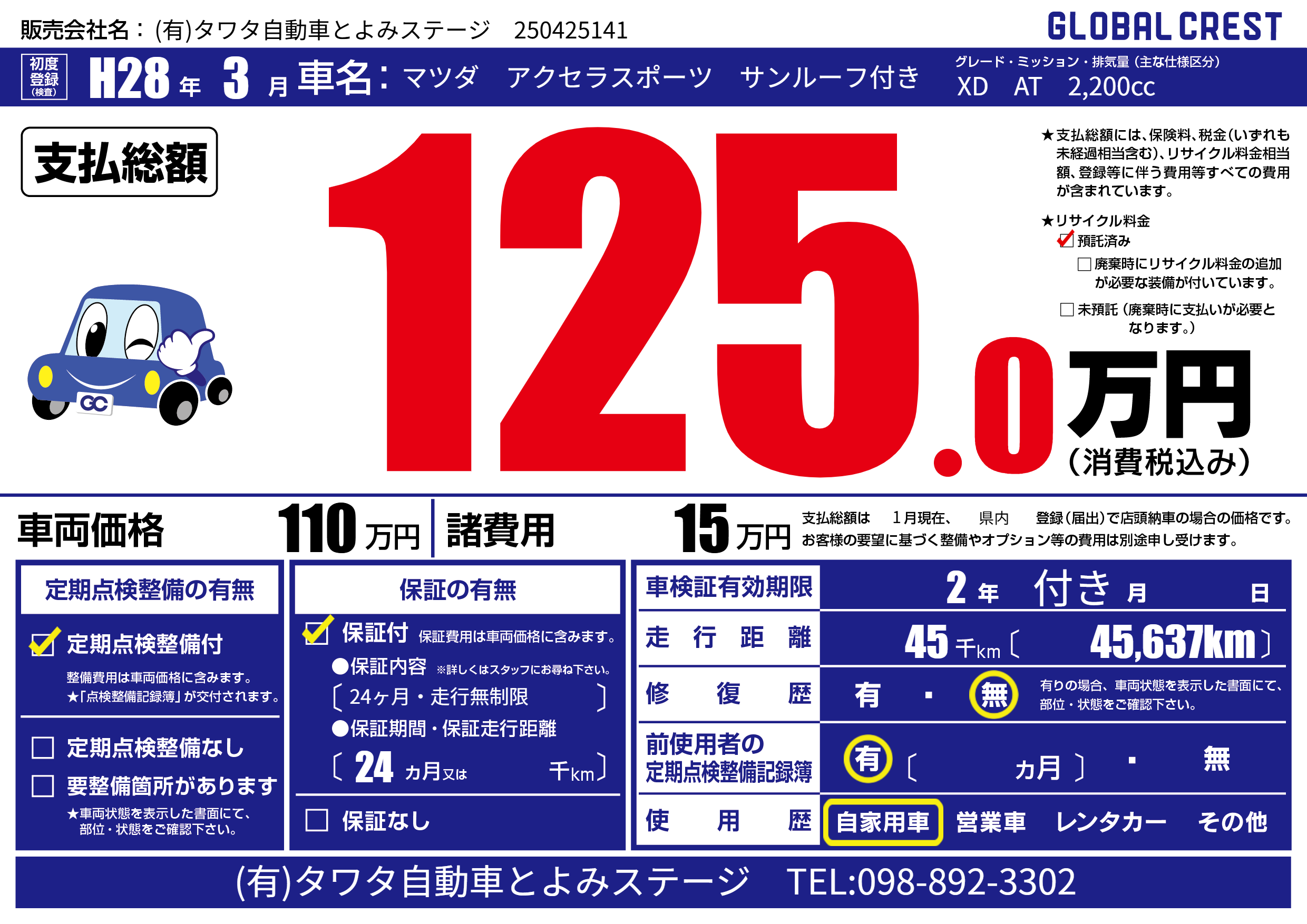 | 初年度登録 | H28年3月 | ||