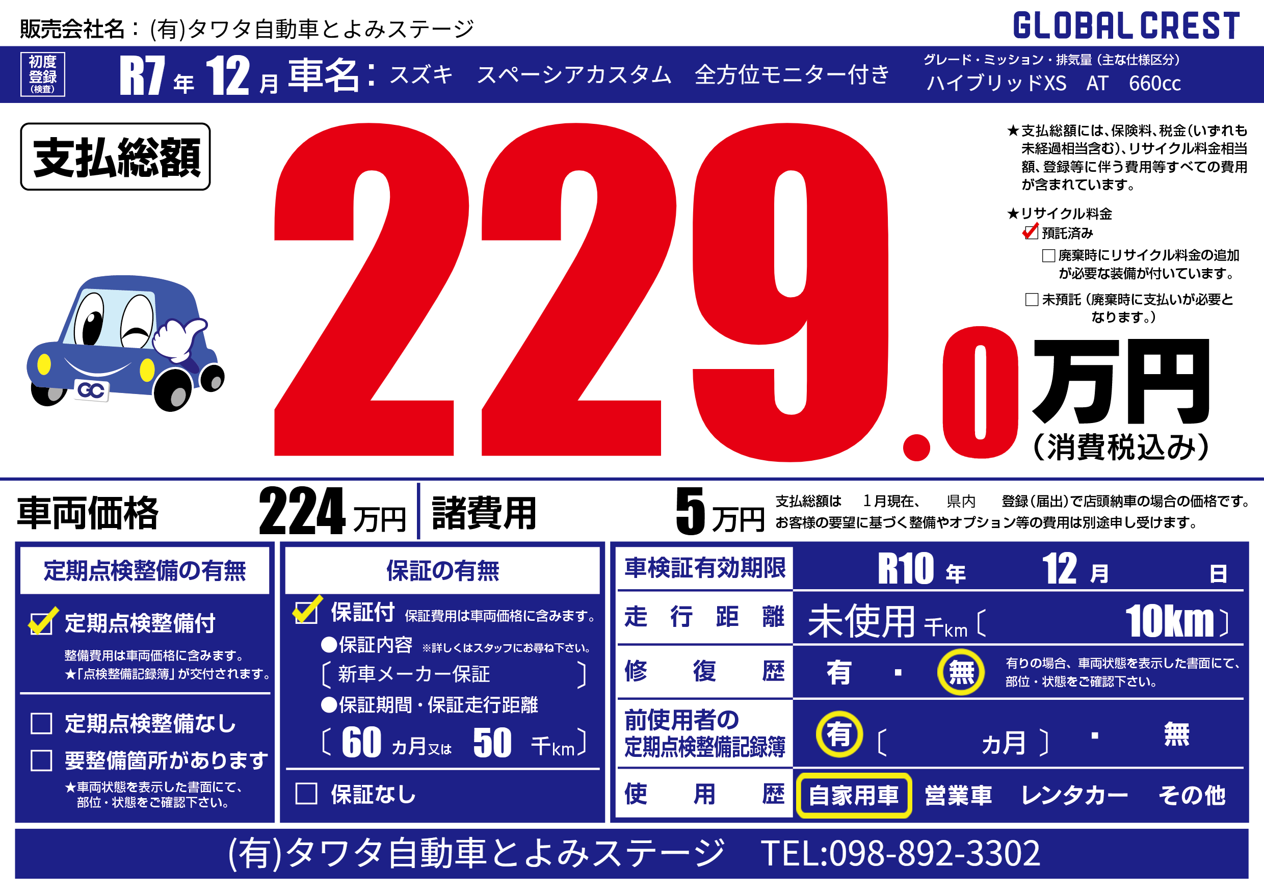 | 車検制限 | R10年 12月 - 日 | ||