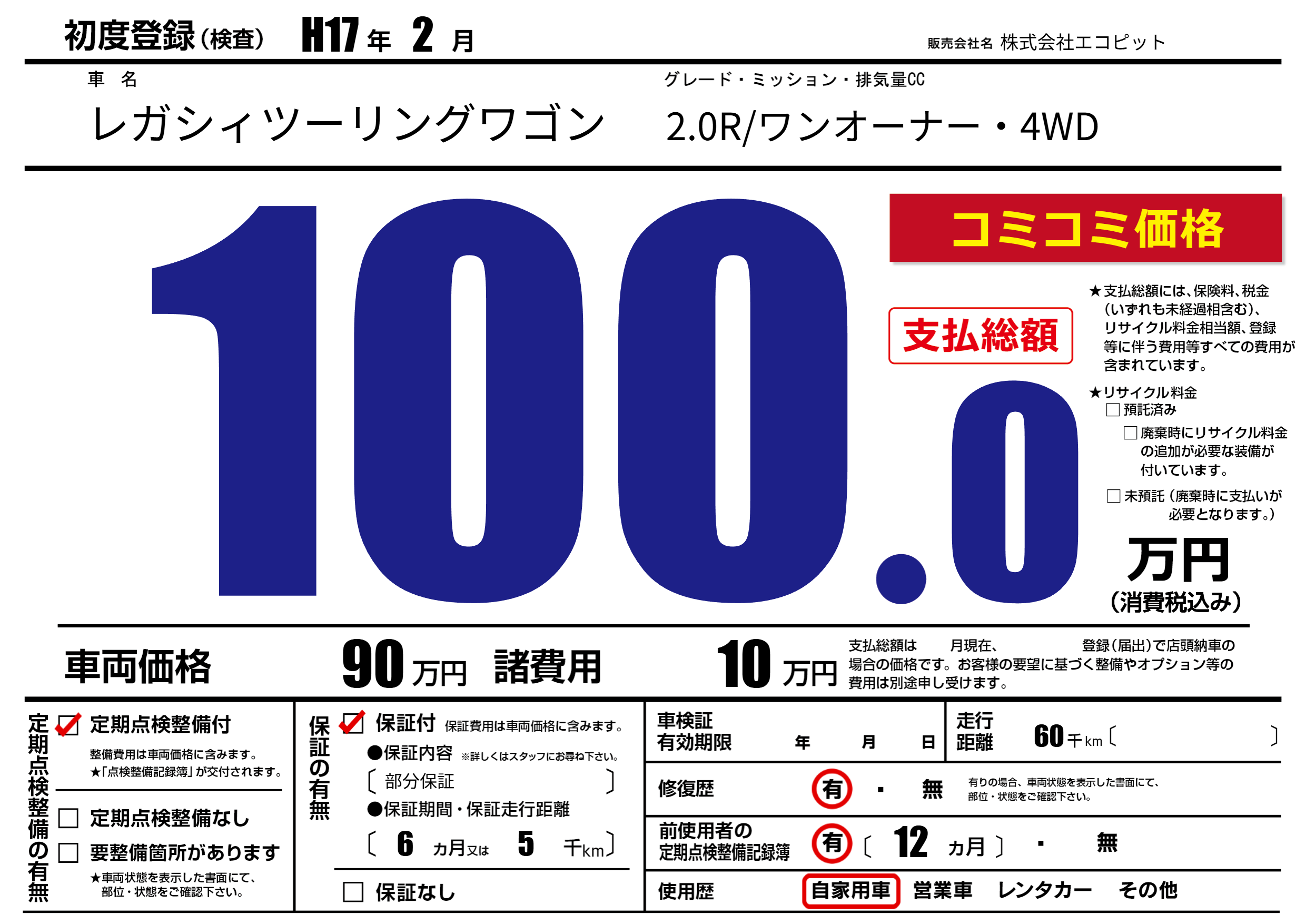 定期点検整備 | 定期点検整備あり |