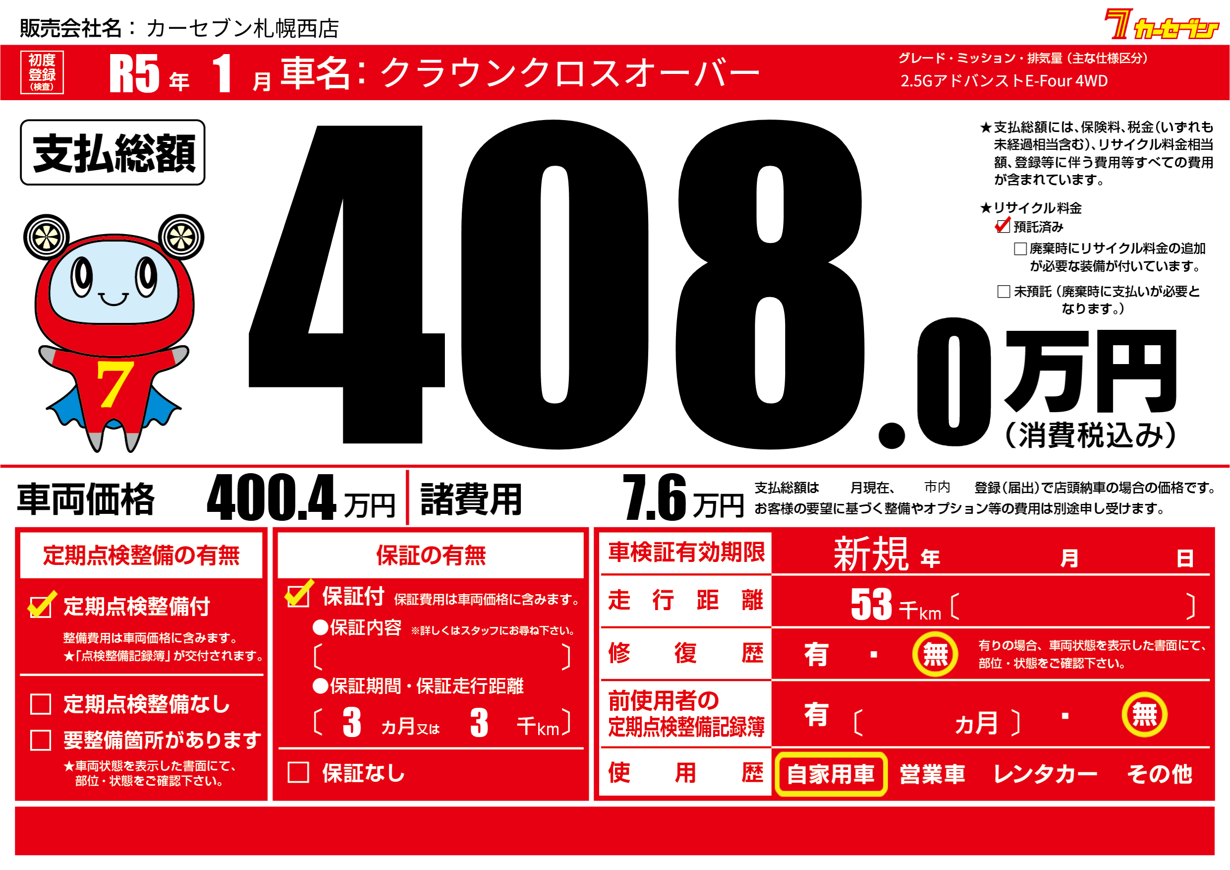 | 定期点検整備 | 定期点検整備あり | ||