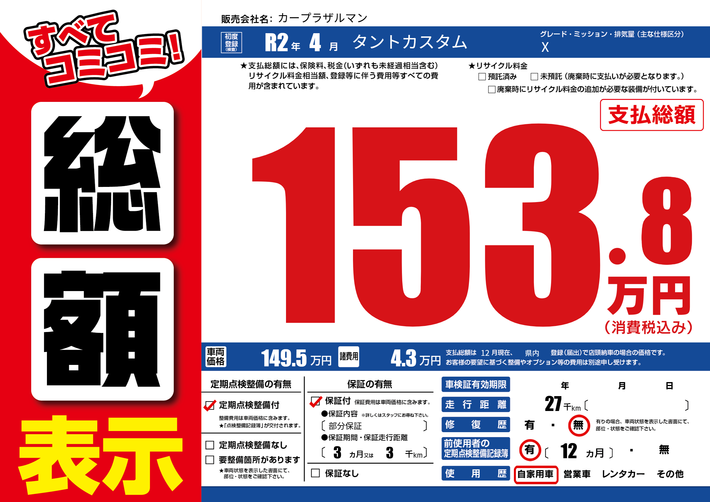 | 定期点検整備 | 定期点検整備あり | ||