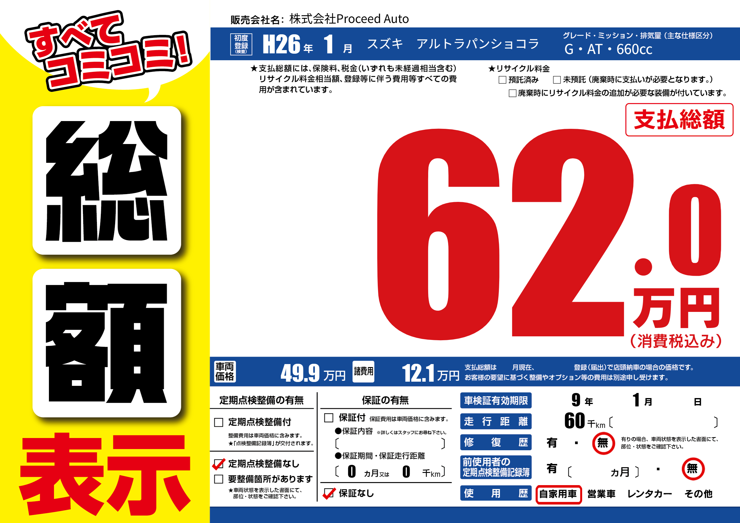 なし | 車検制限 | 9年1月---月 |