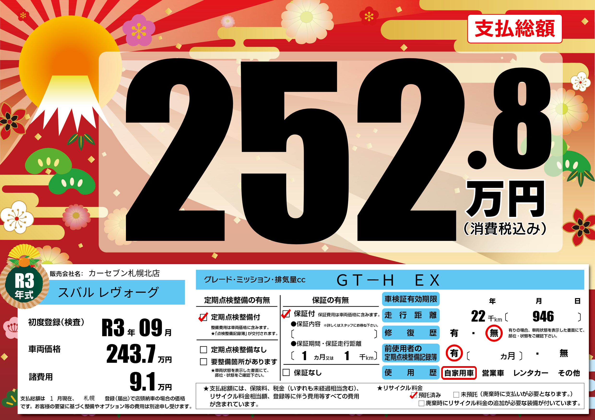 | 初年度登録 | R3年09月 | ||