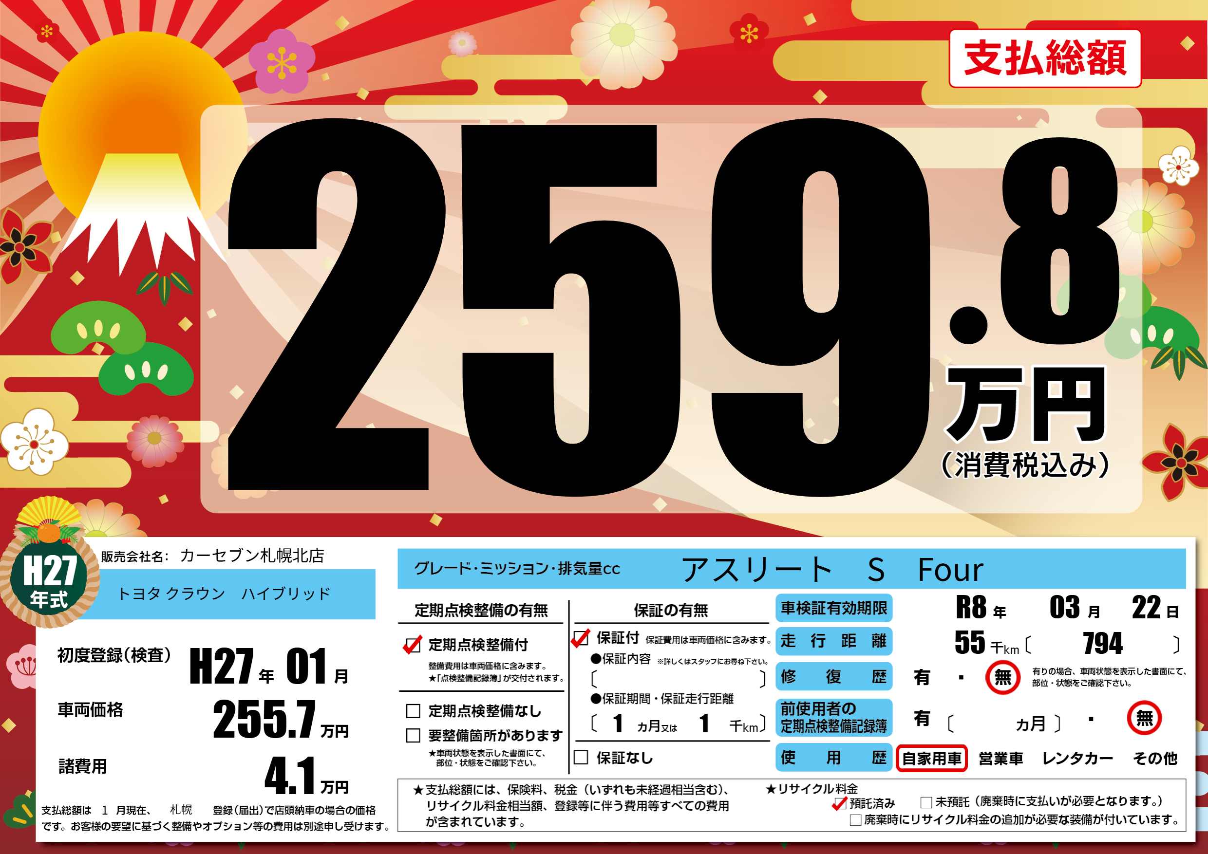 | 車検制限 | R8年 03月 22日 | ||