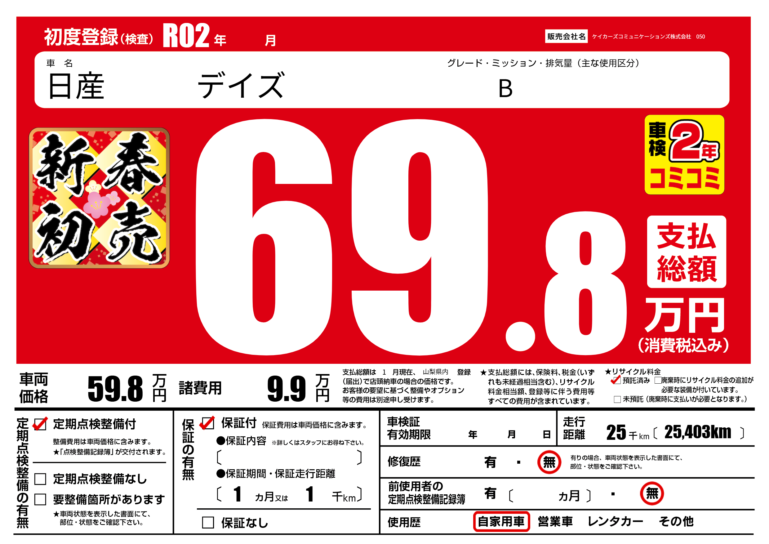 | 定期点検整備 | 定期点検整備あり | ||