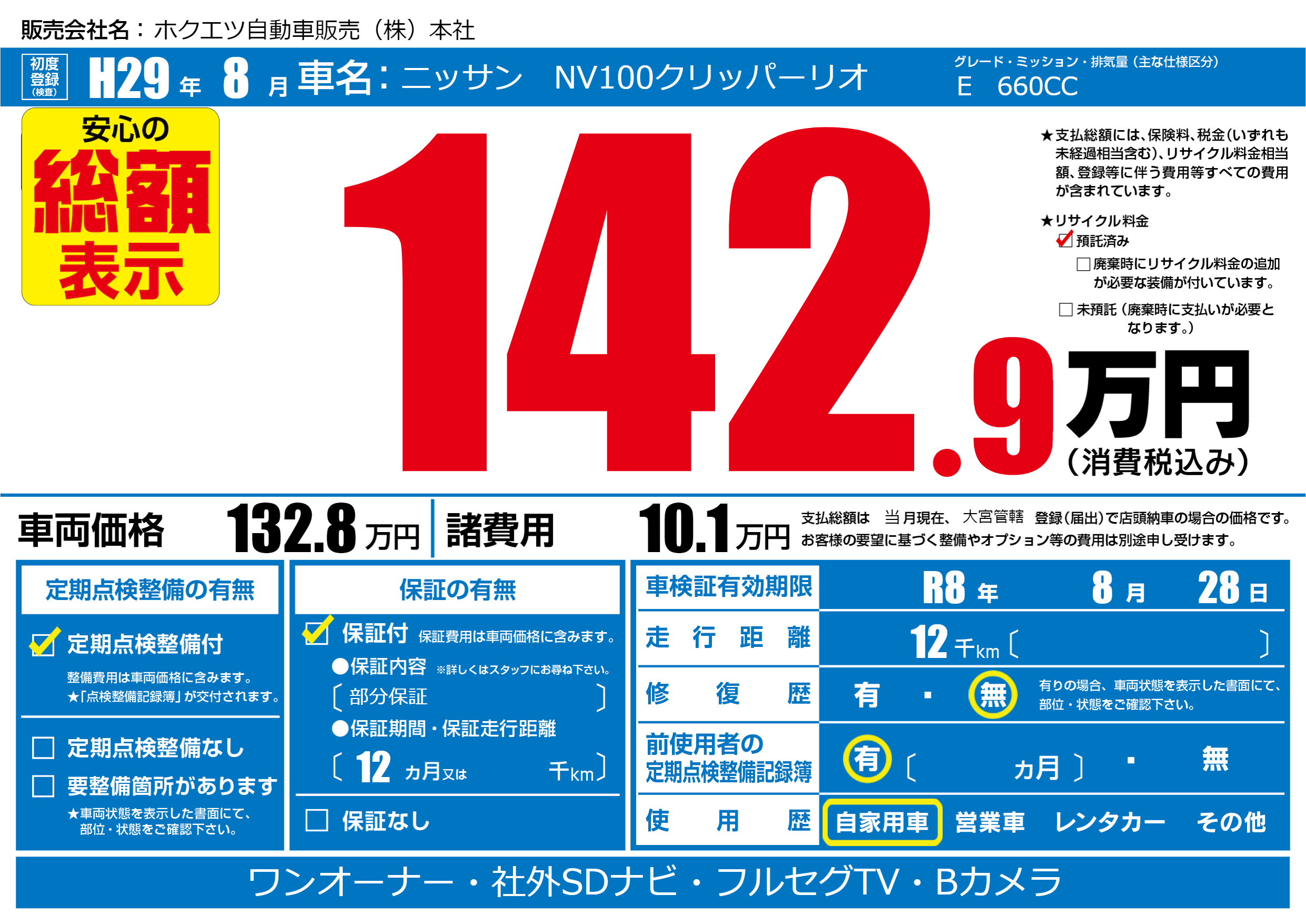 | 車検制限 | R8年 8月 28日 | ||