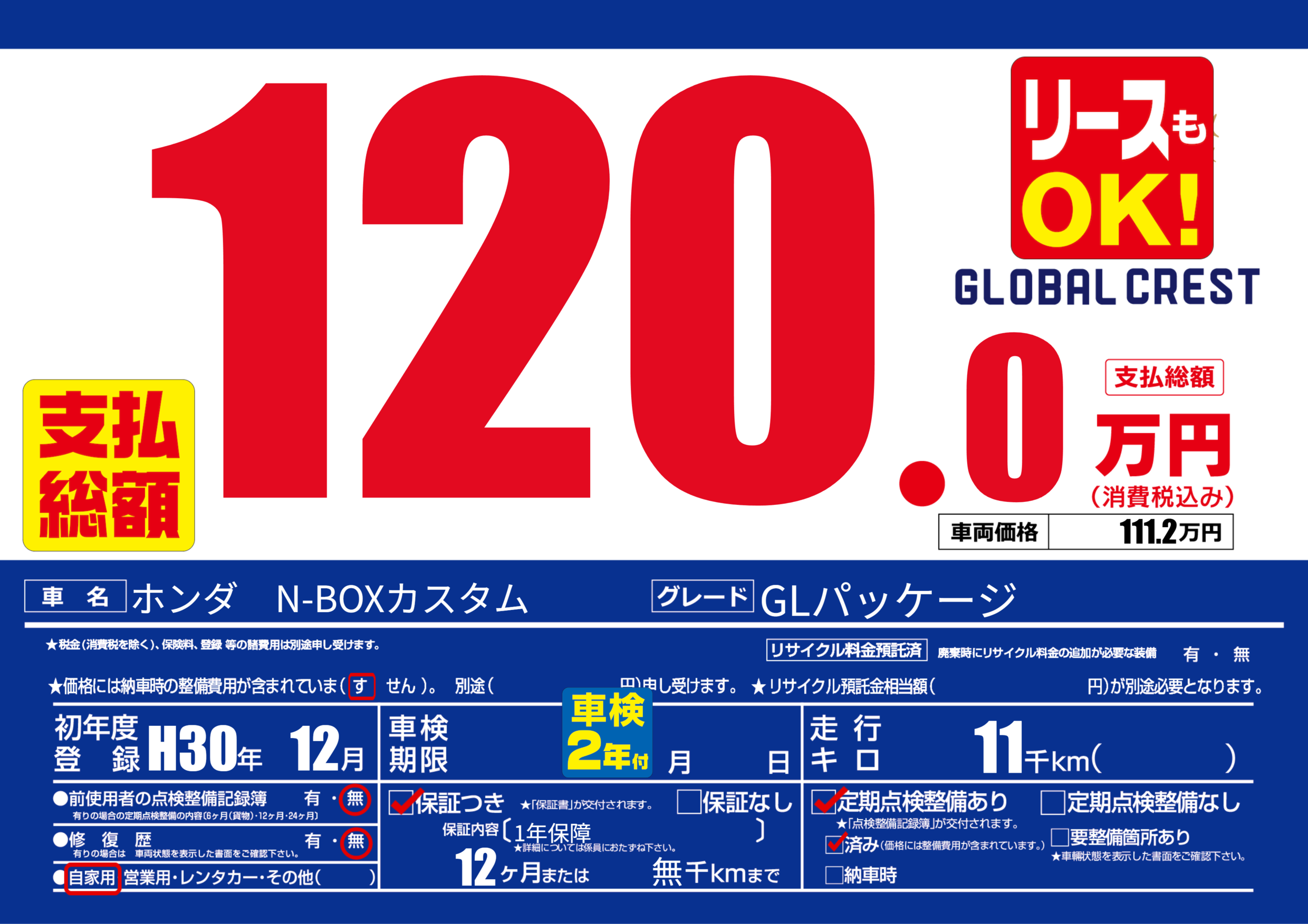 | 定期点検整備 | 定期点検整備あり 定期点検整備済み | ||