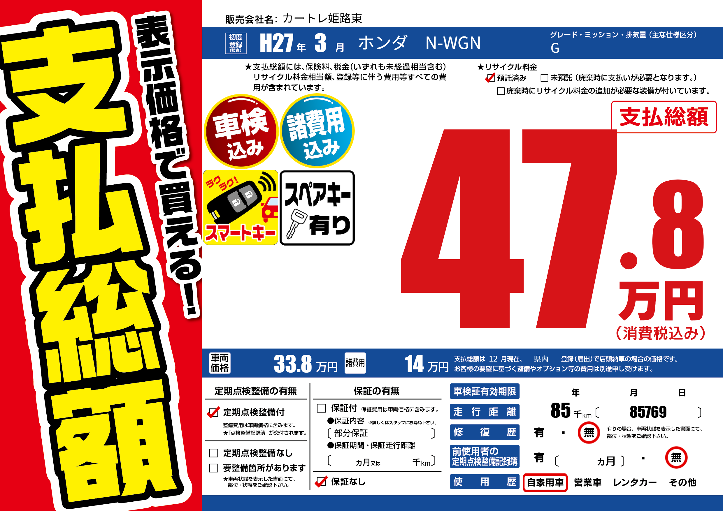 | 車検制限 | - 年 - 月 - 日 | ||