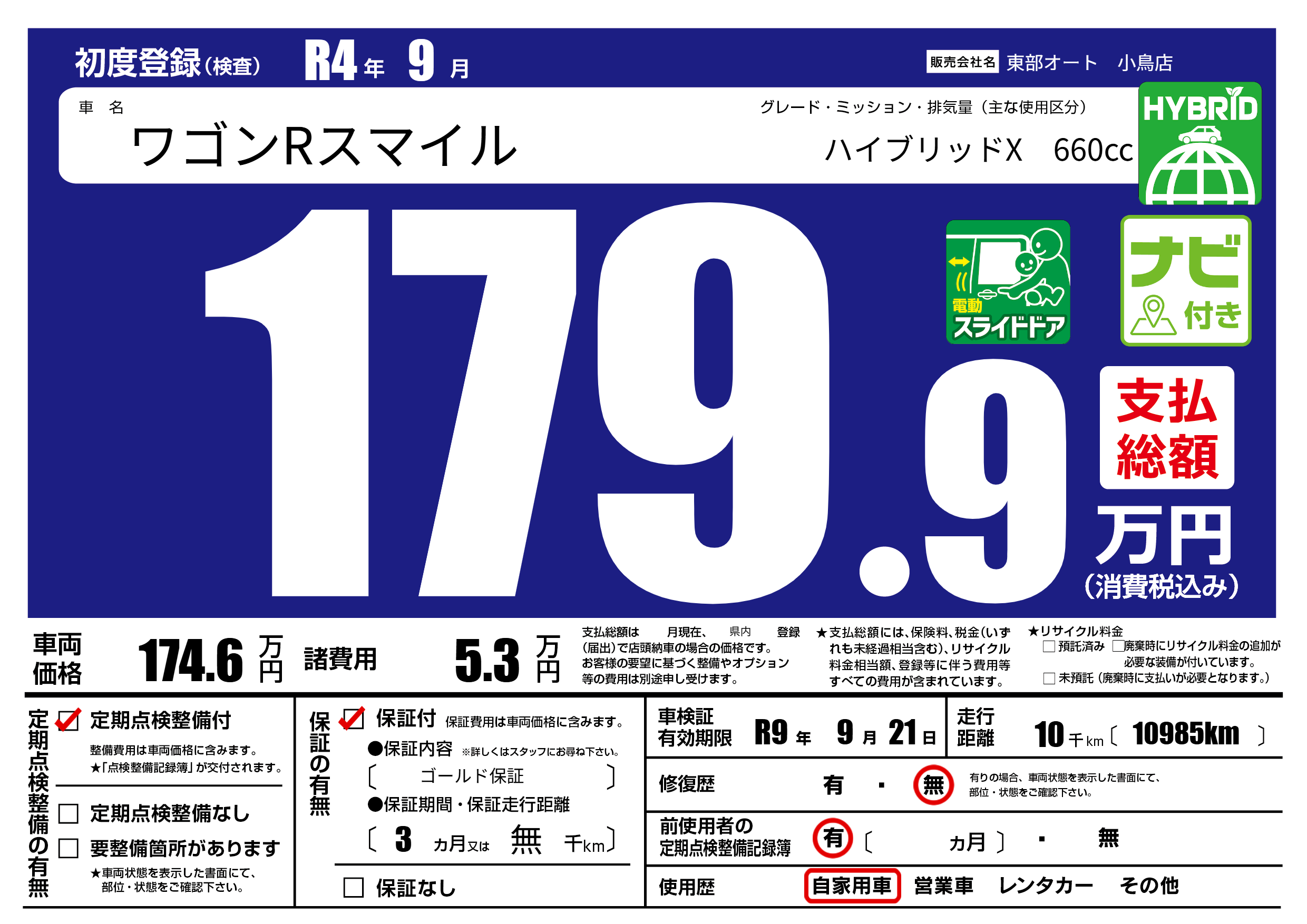 なし | 車検制限 | R9年9月21月 |