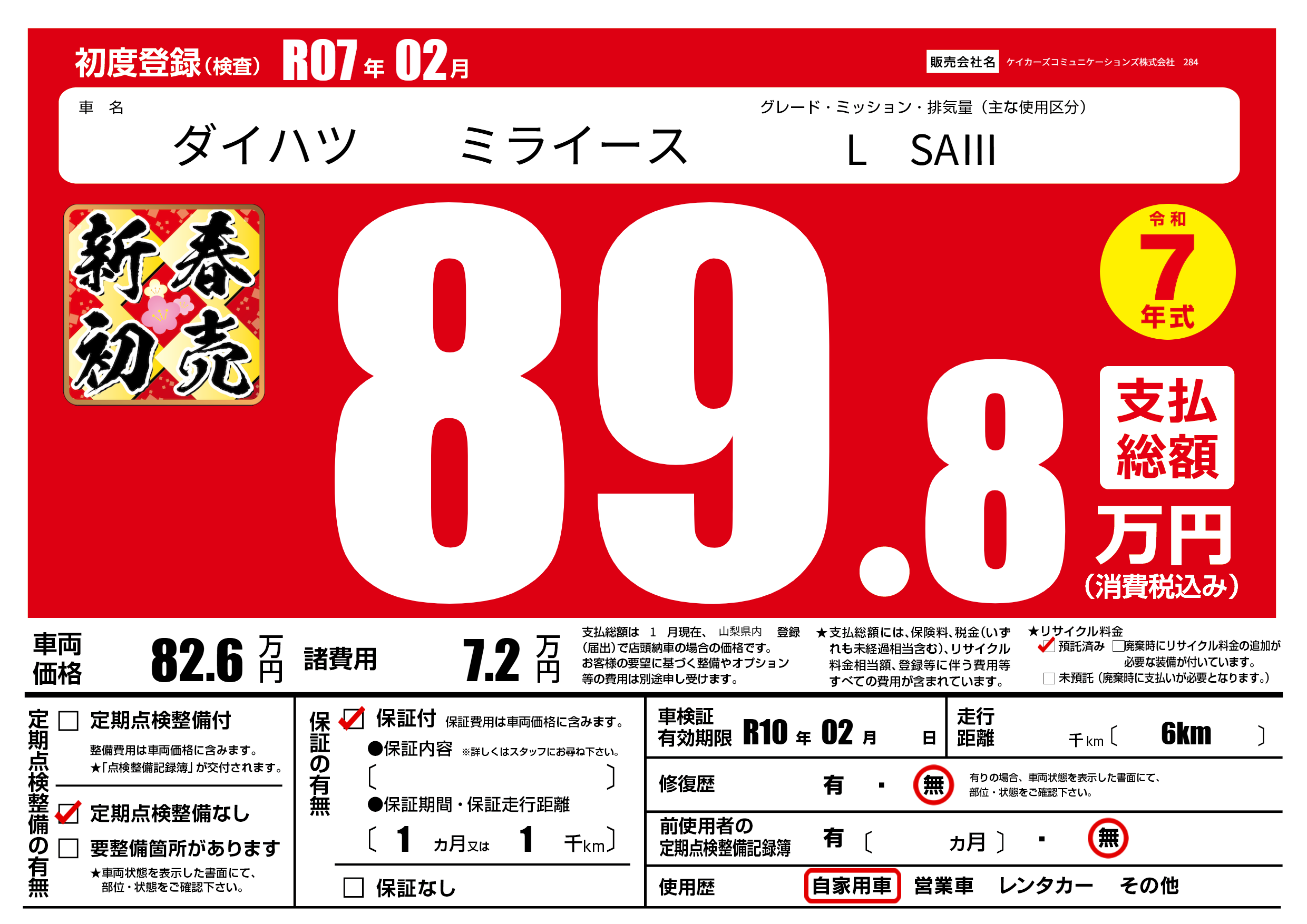 | 初年度登録 | R07年02月 | ||