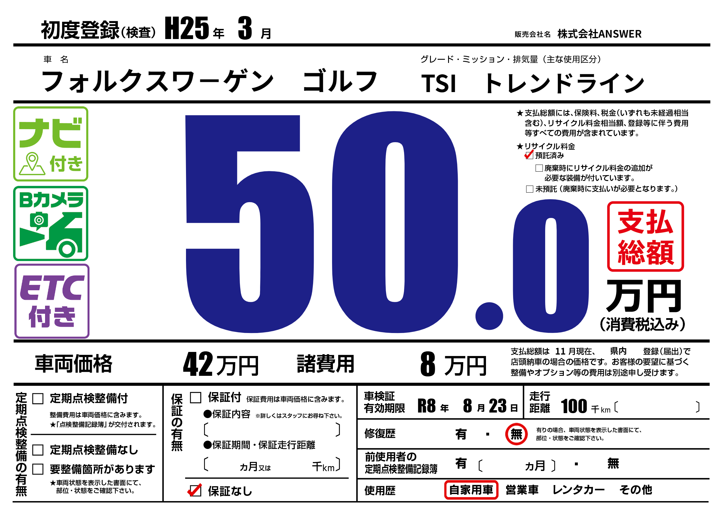 なし | 車検制限 | R8年8月23月 |