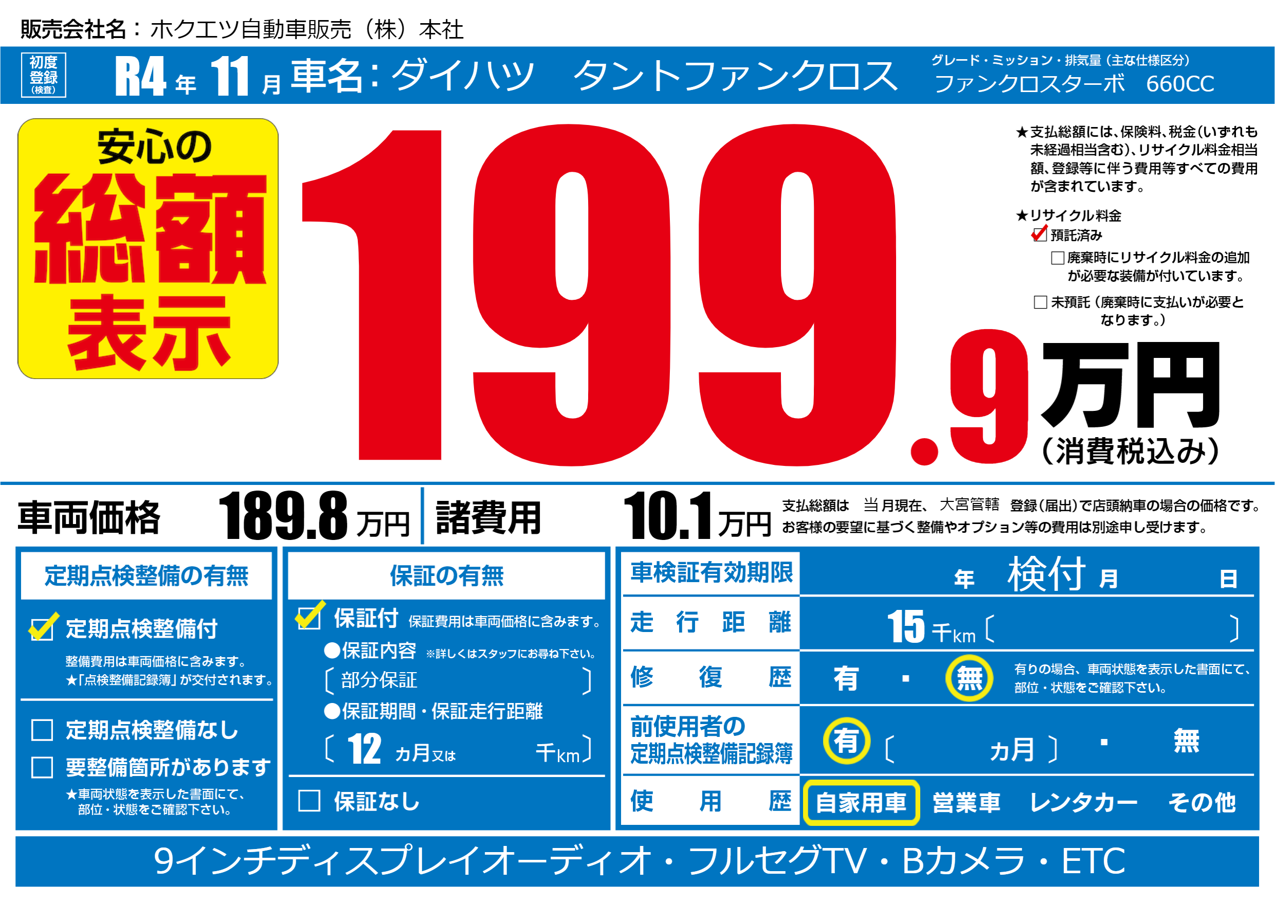 | 定期点検整備 | 定期点検整備あり | ||
