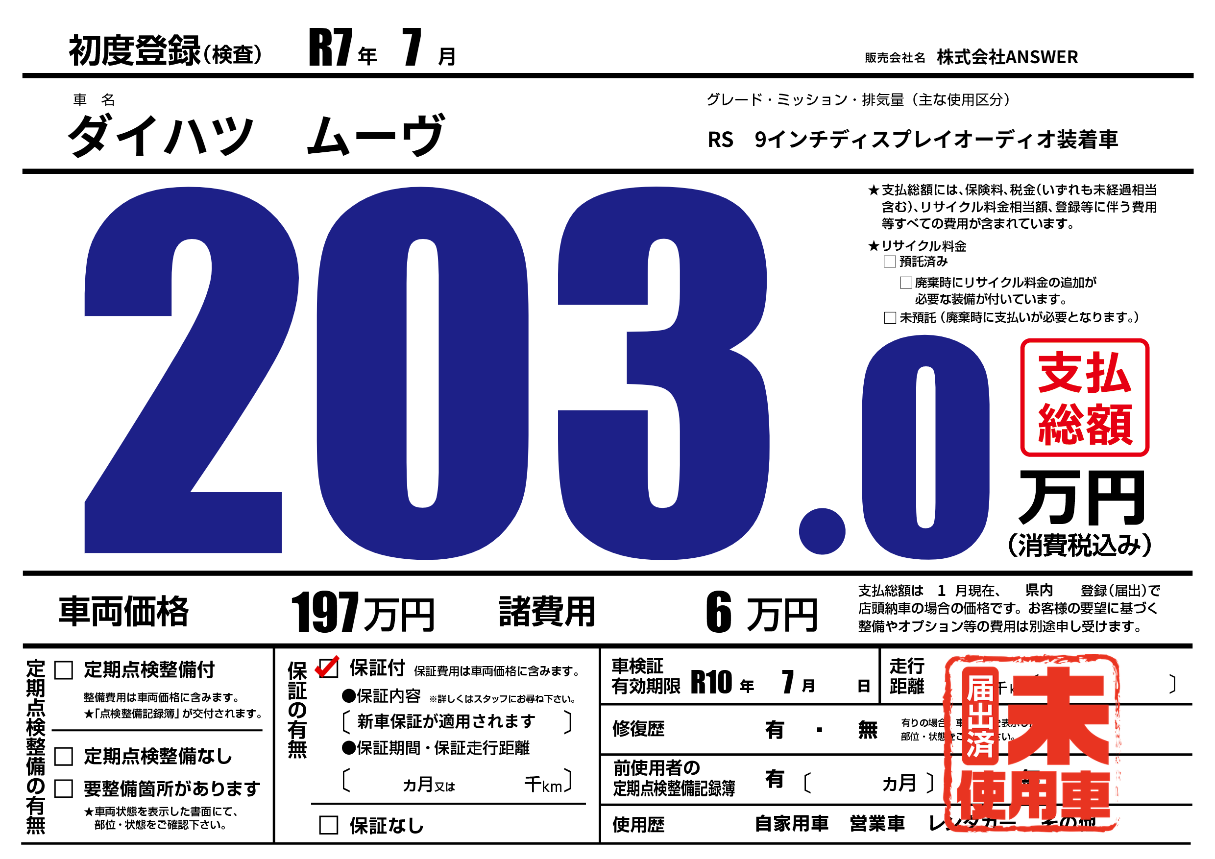 なし | 車検制限 | R10年7月---月 |
