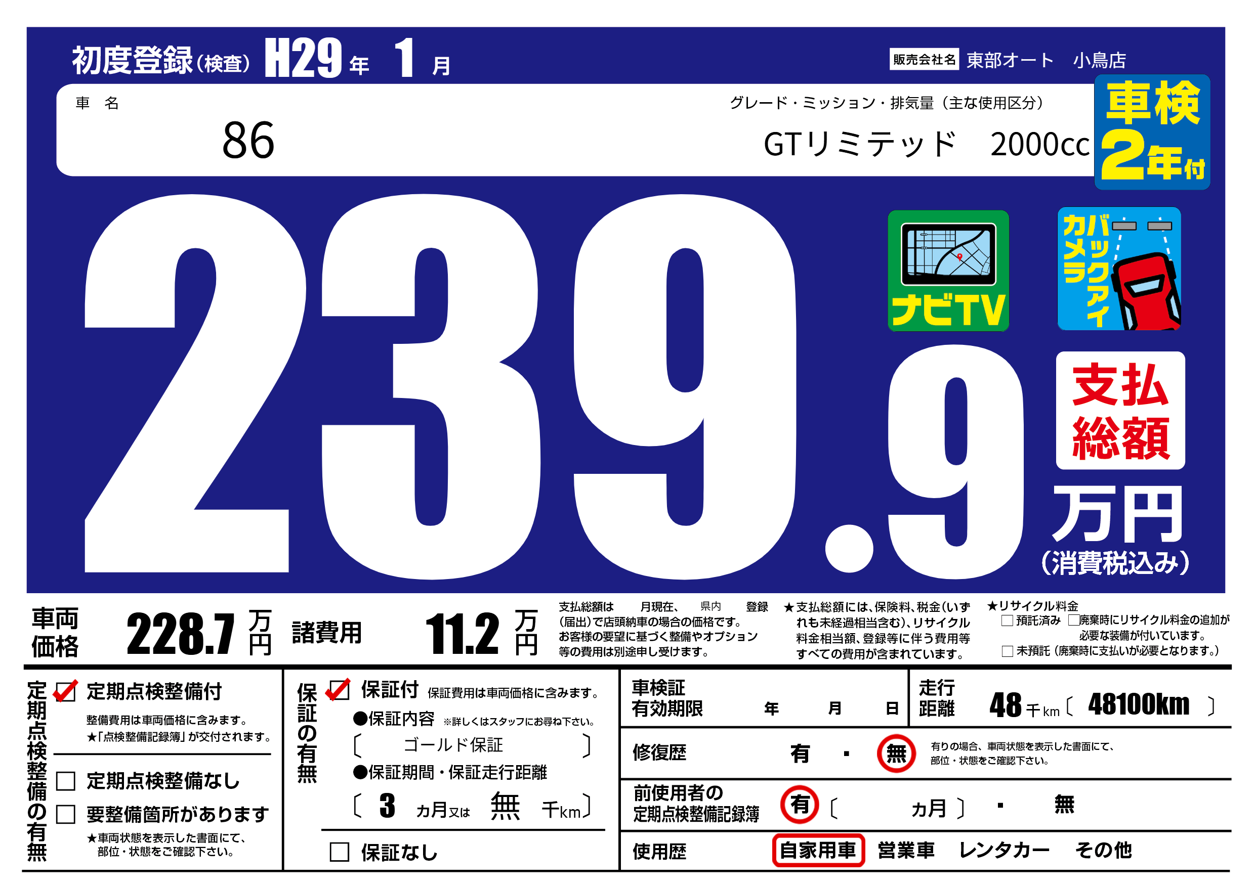 | 定期点検整備 | 定期点検整備あり | ||