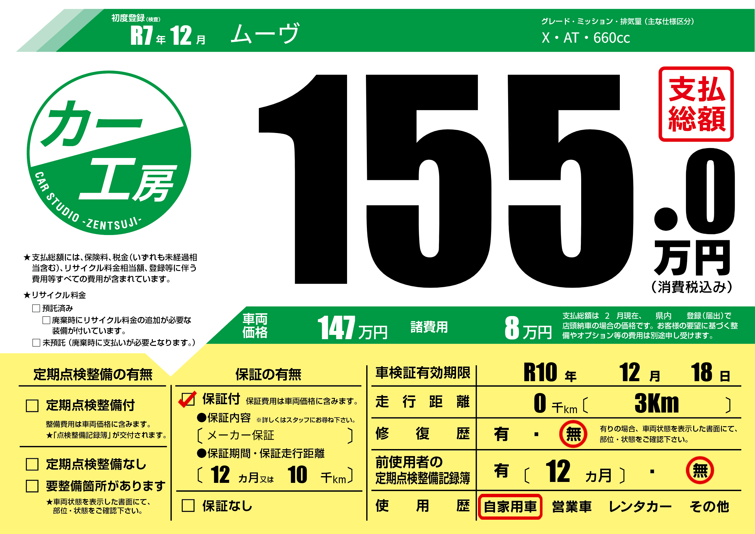 | 走行キロ | - | 初年度登録 | R7年12月 |