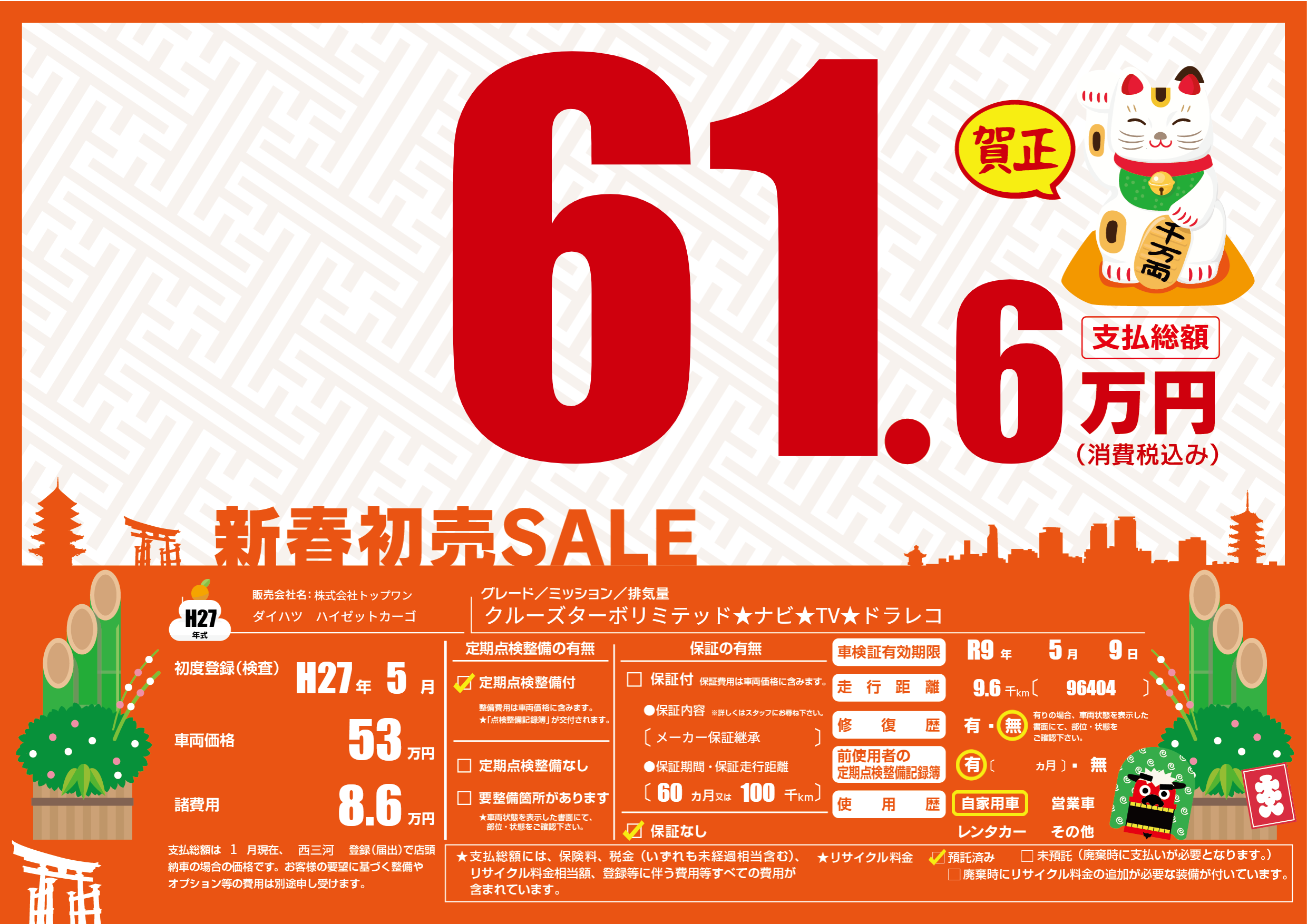 | 車名 | ダイハツ ハイゼットカーゴ | グレード ミッション 排気量 |