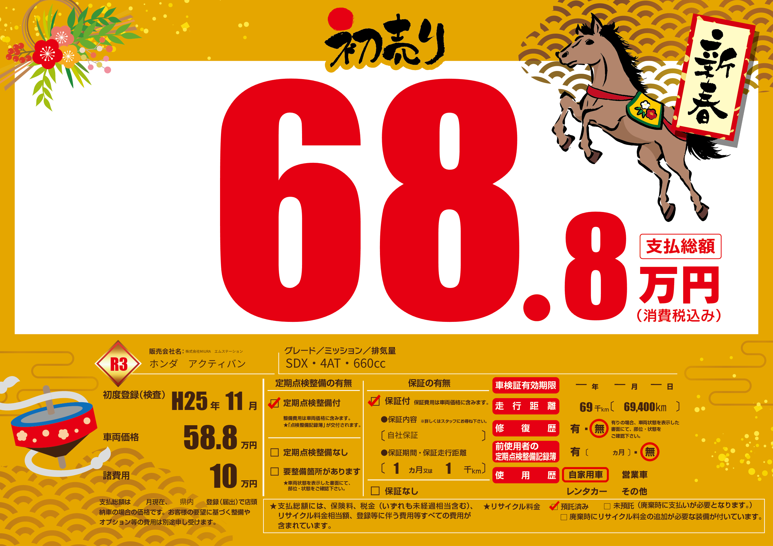 | 車名 | ホンダ アクティバン | グレード ミッション 排気量 |
