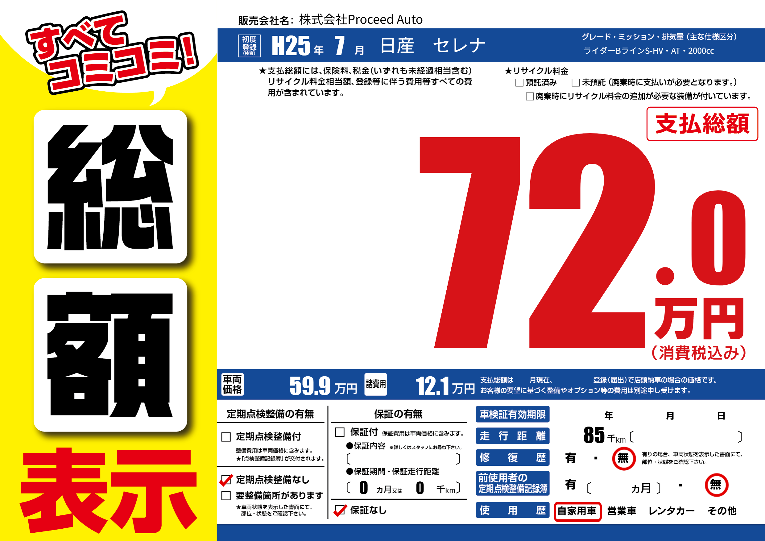 | 定期点検整備 | 定期点検整備なし | ||