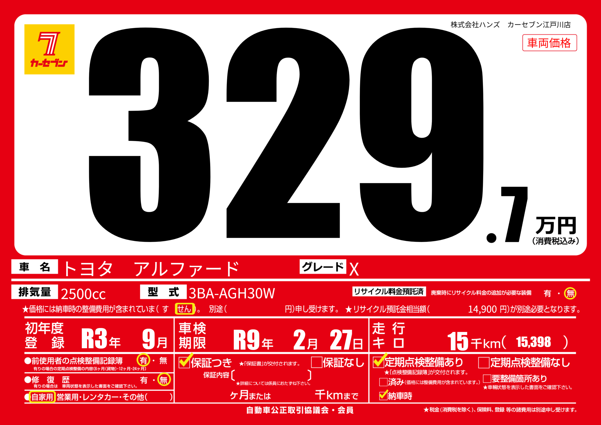 なし | 車検制限 | R9年2月27月 |