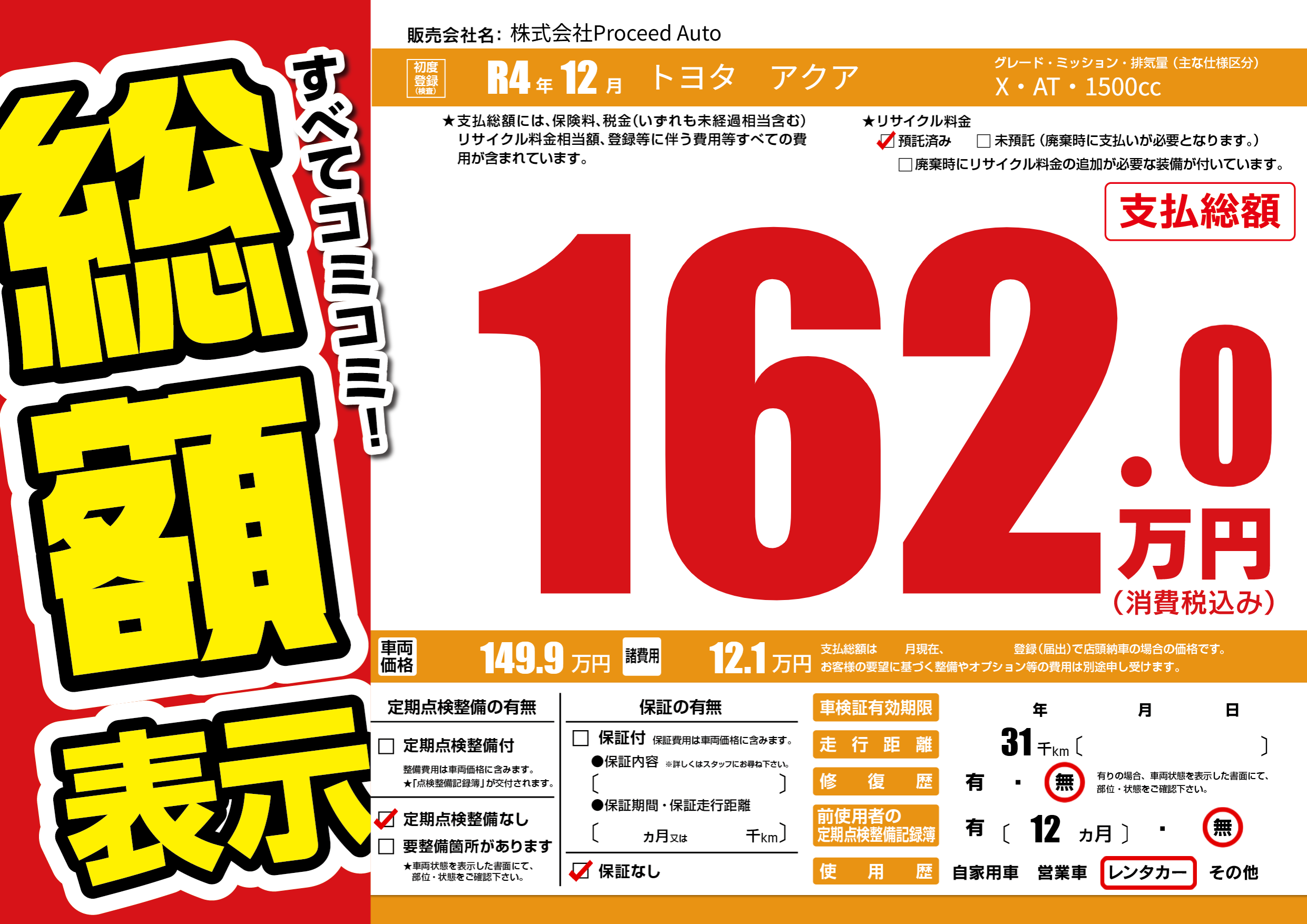 | 定期点検整備 | 定期点検整備なし | ||