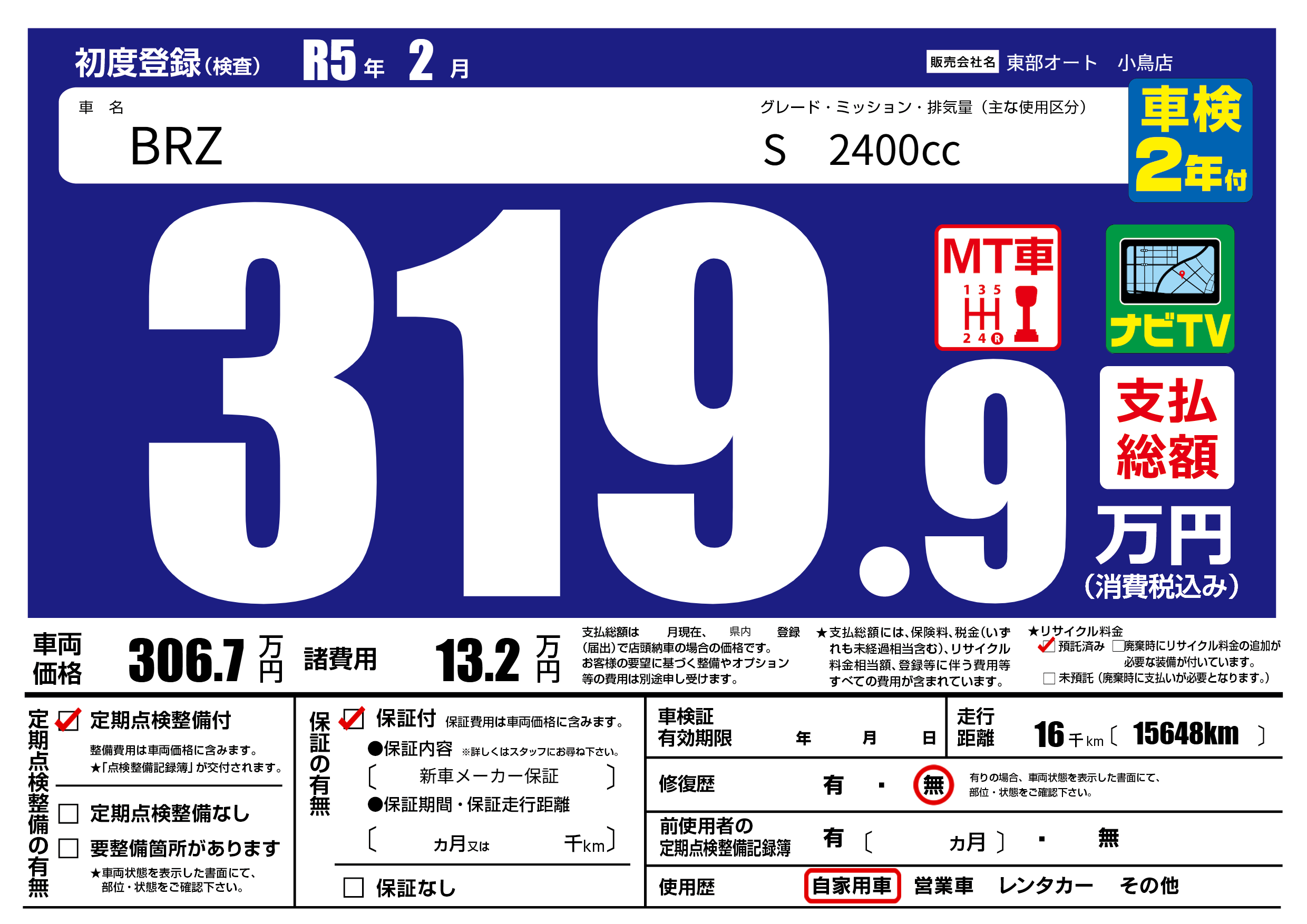 | 定期点検整備 | 定期点検整備あり | ||