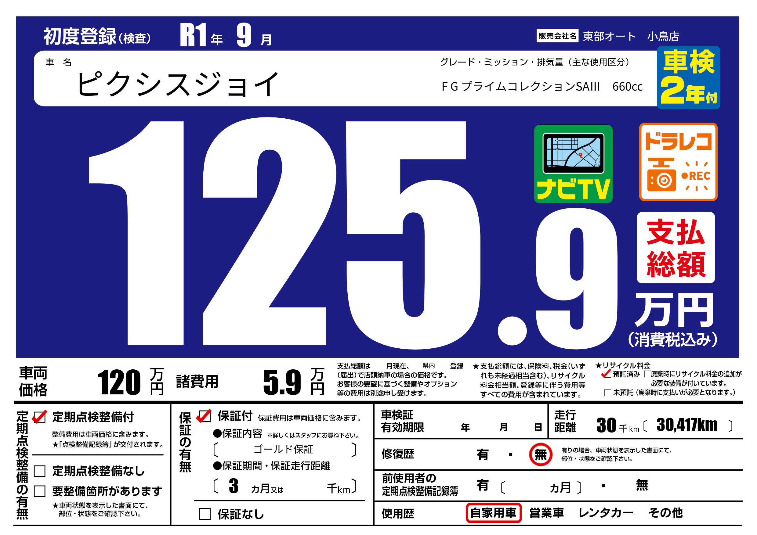 | 走行キロ | 3万km | ||