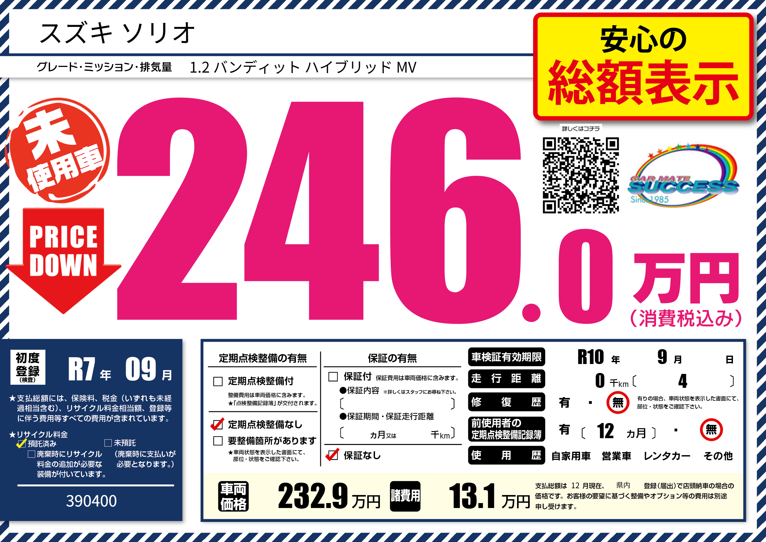 | 走行キロ | - | 初年度登録 | R7年09月 |