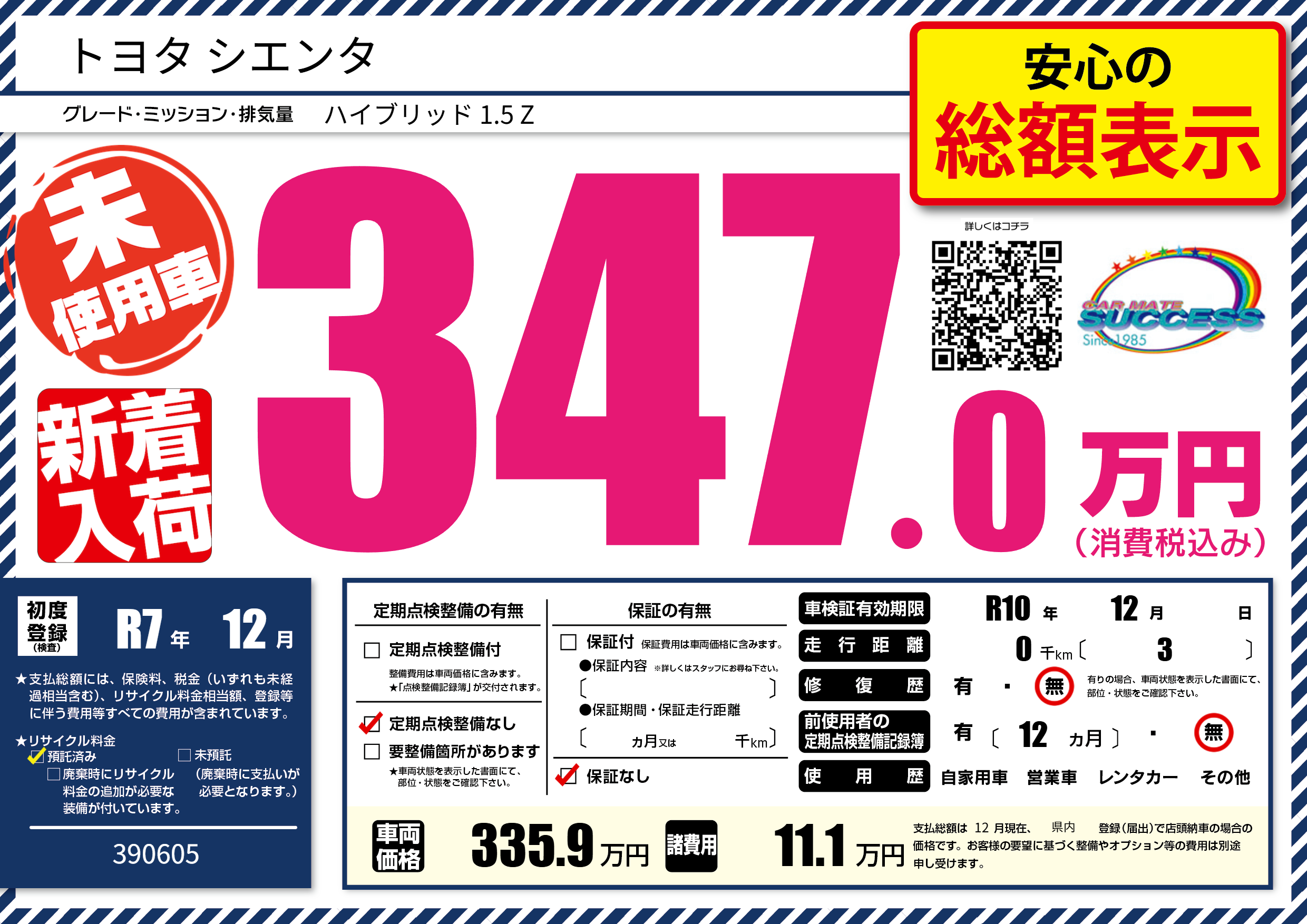 | 車名 | トヨタ シエンタ | グレード ミッション 排気量 |