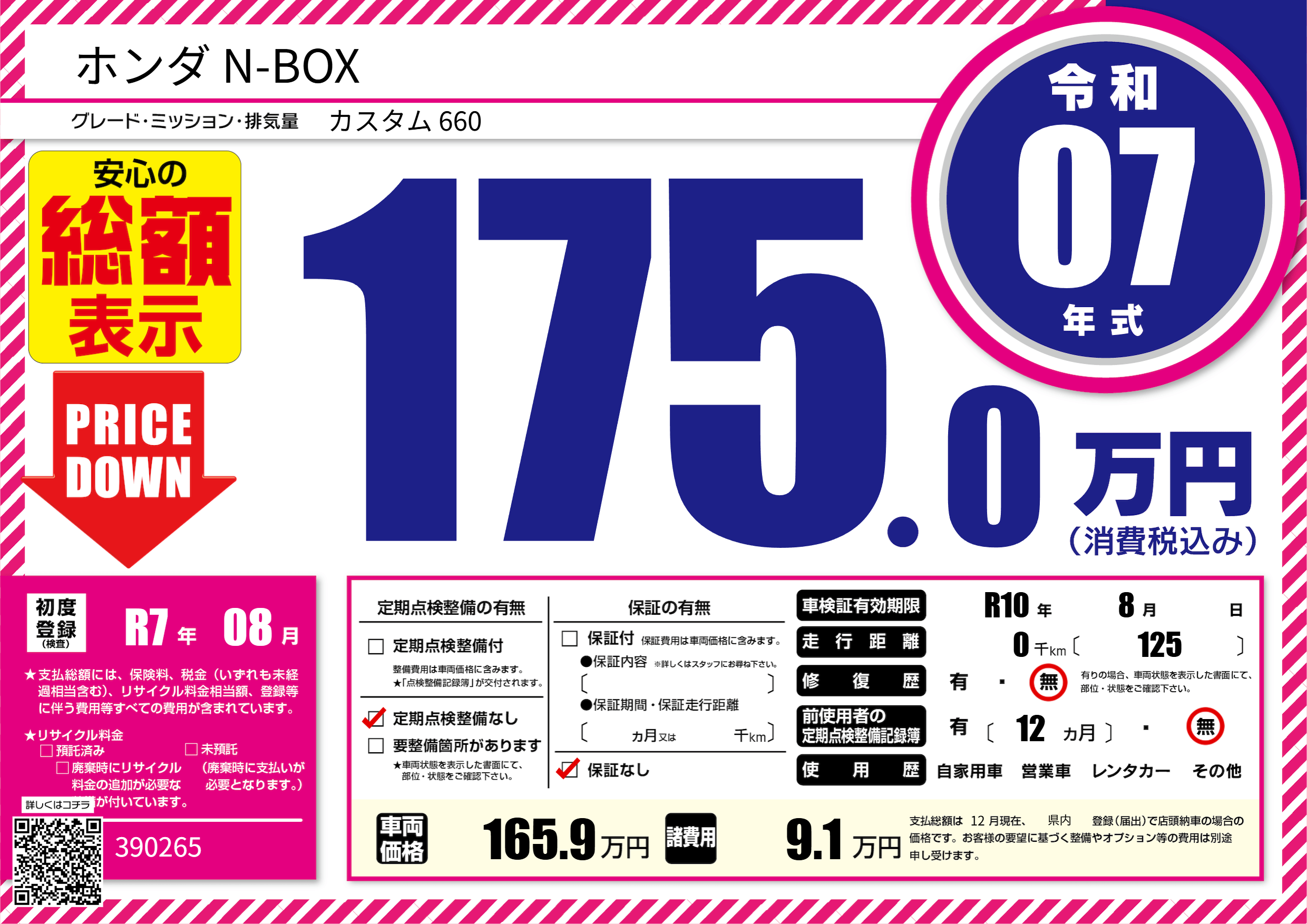 なし | 車検制限 | R10年8月---月 |