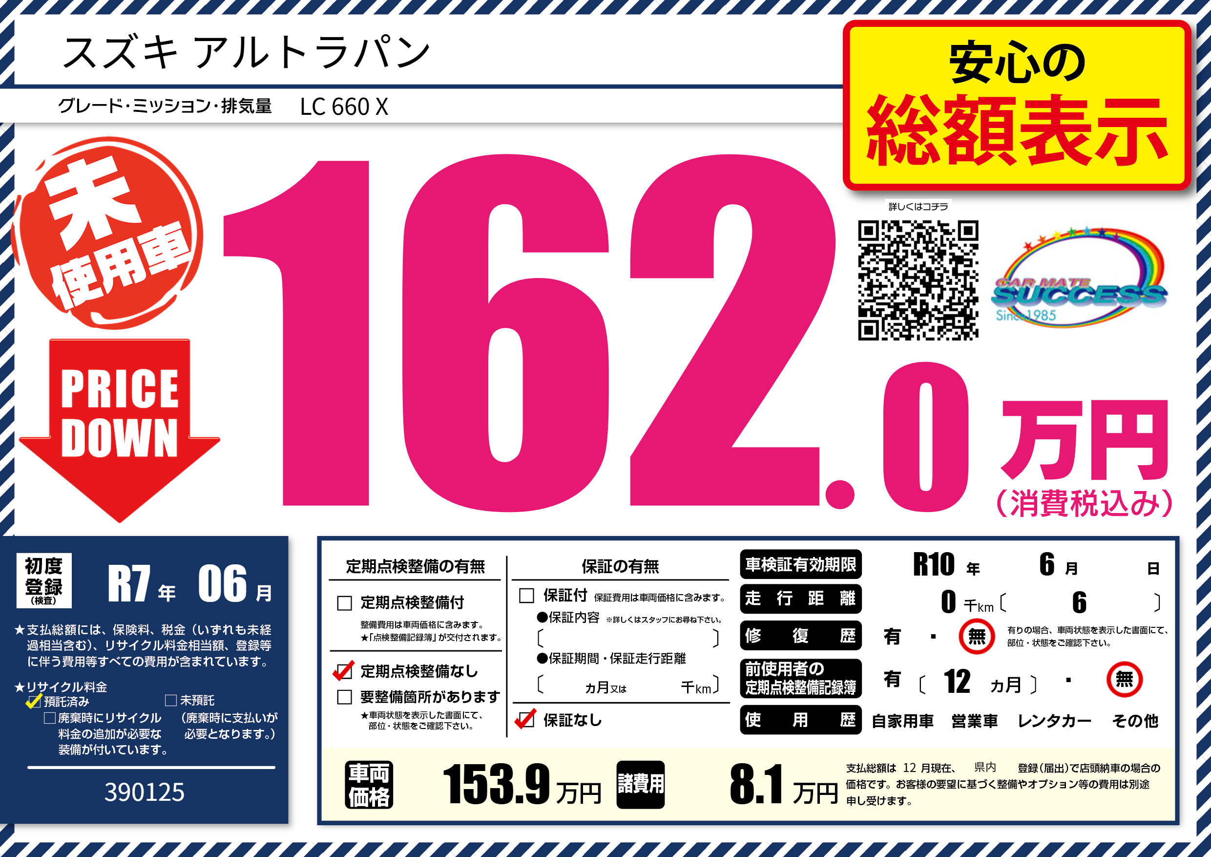 | 車検制限 | R10年 6月 - 日 | ||