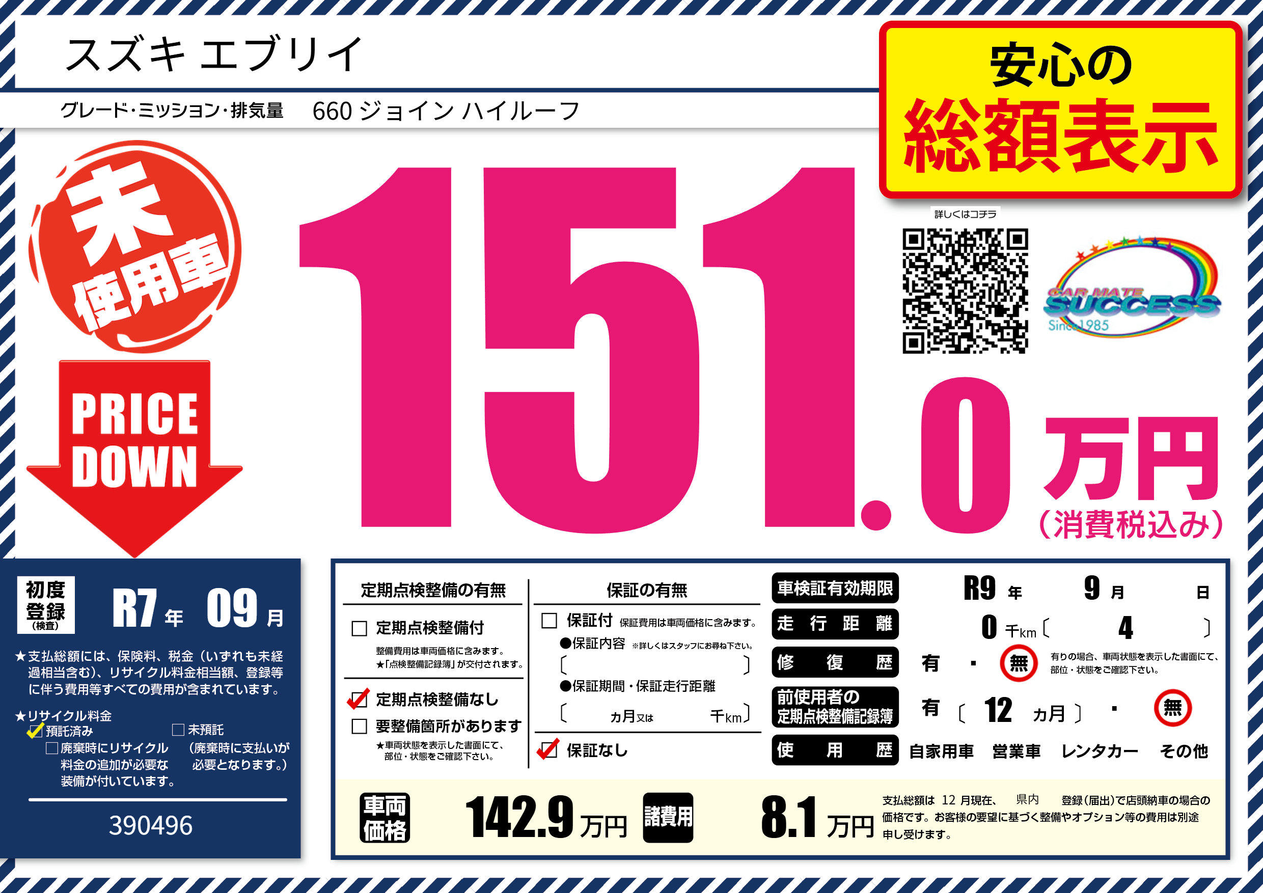 なし | 車検制限 | R9年9月---月 |