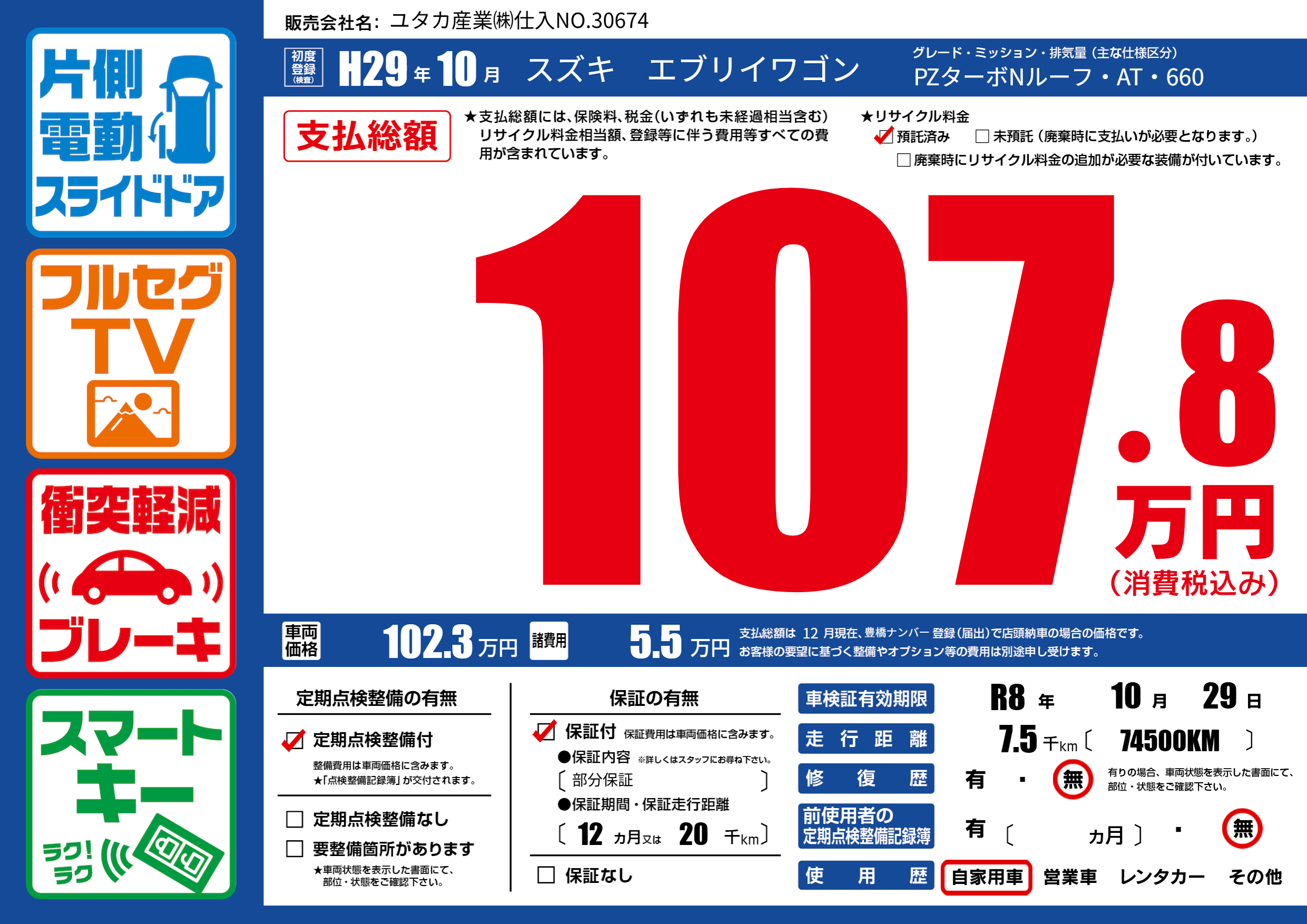 | 車検制限 | R8年 10月 29日 | ||