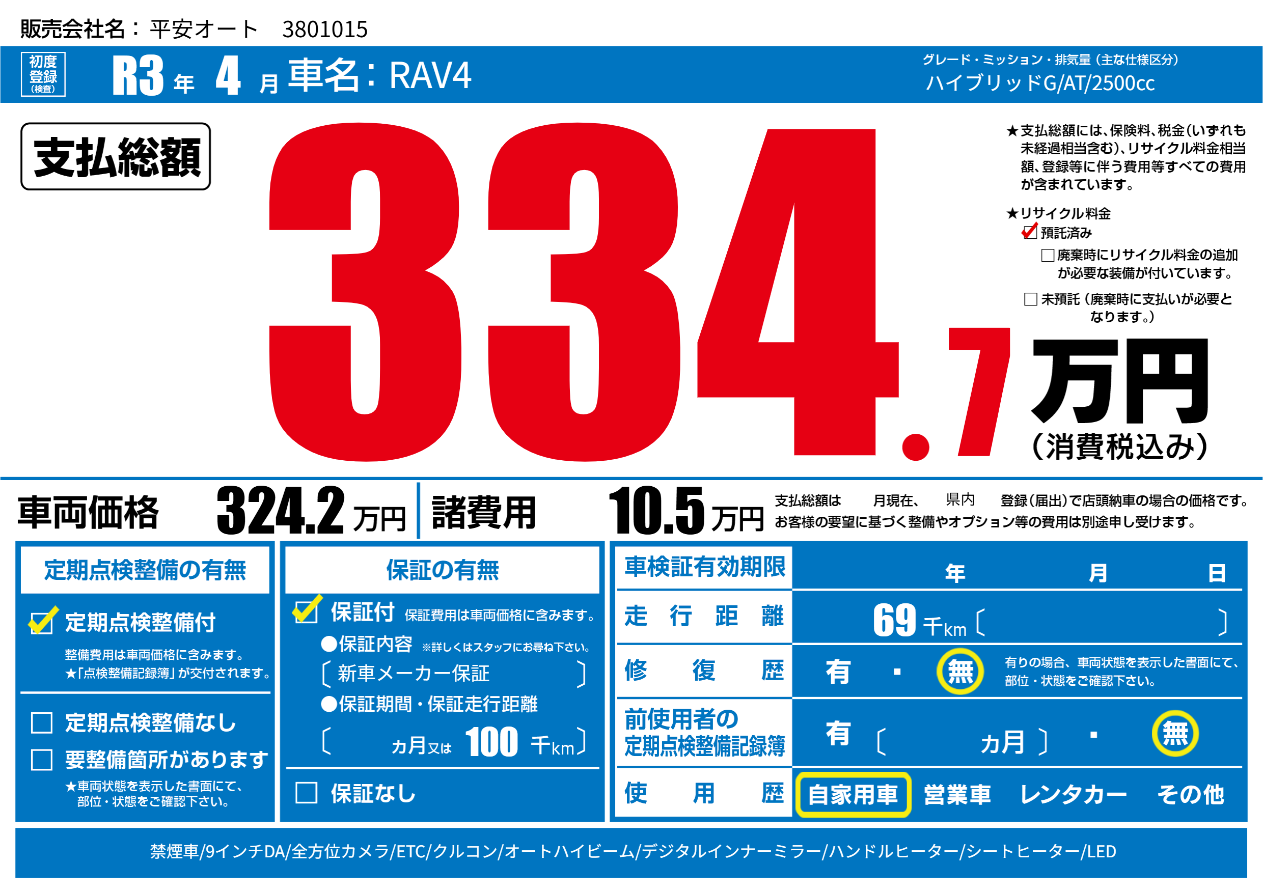 | 車名 | RAV4 | グレード ミッション 排気量 |