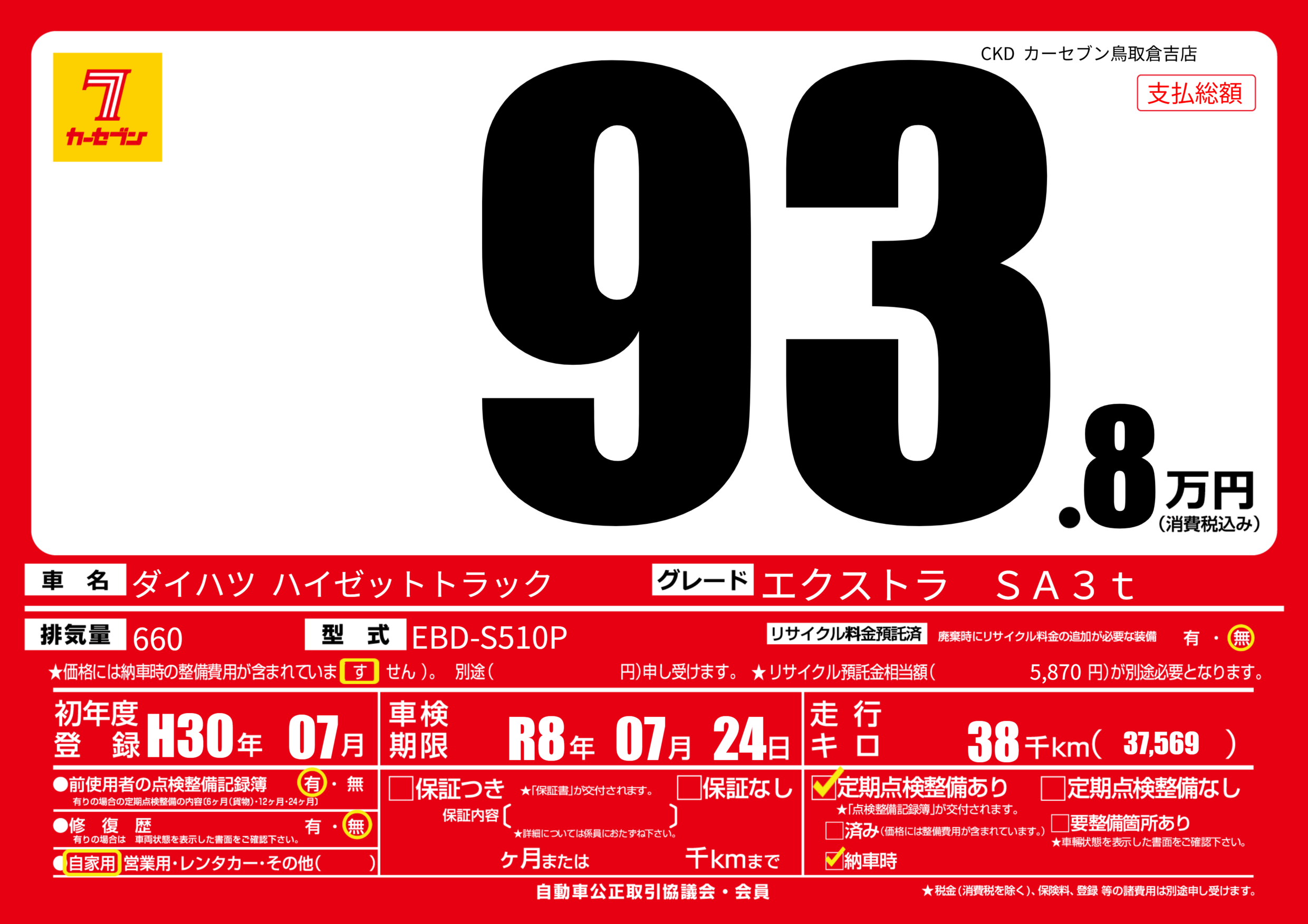| 車検制限 | R8年 07月 24日 | ||