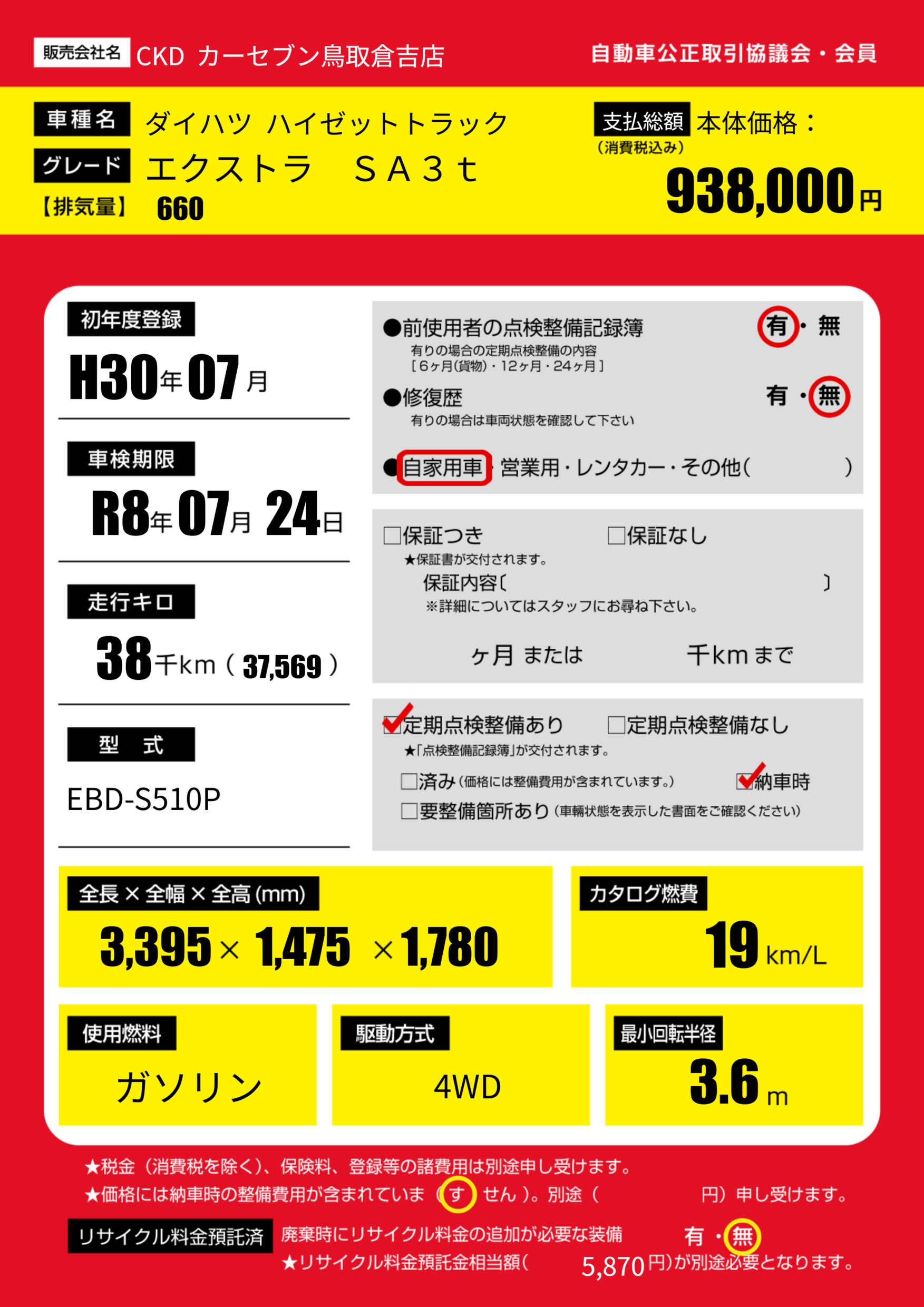 | 走行キロ | 3.8万km | ||