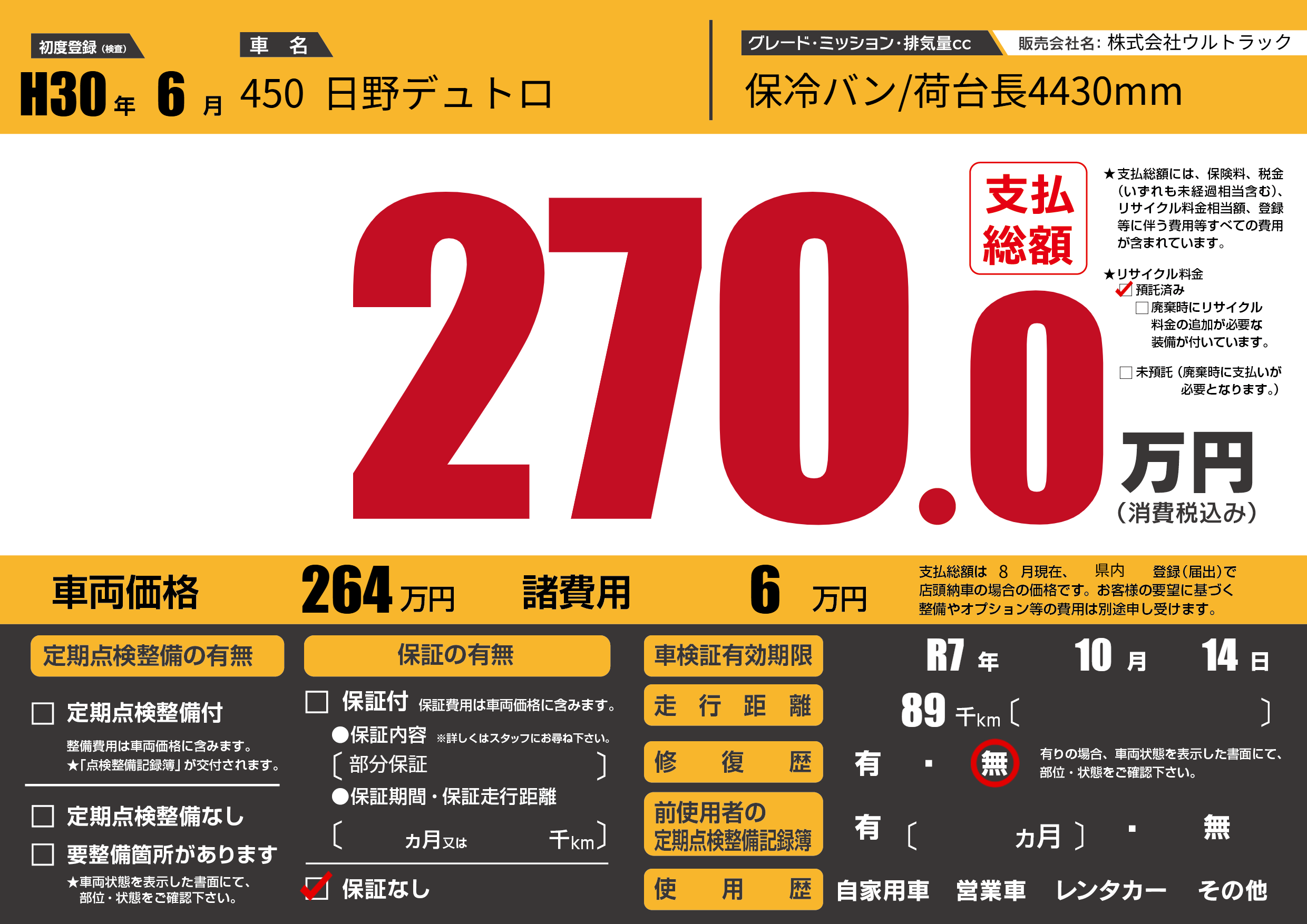 | 車名 | 450 日野デュトロ | グレード ミッション 排気量 |