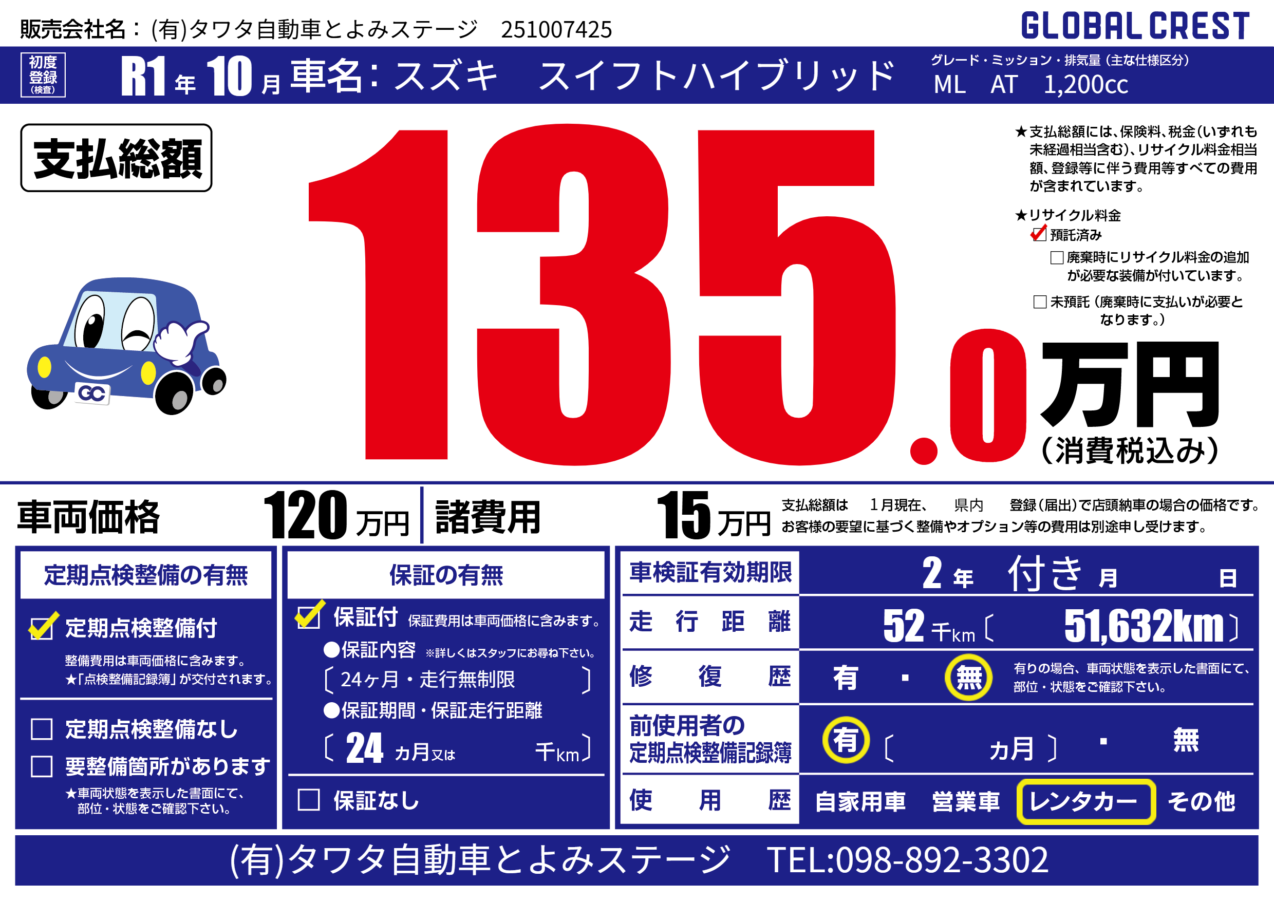 | メーカー | - | 種別 | レンタカー |