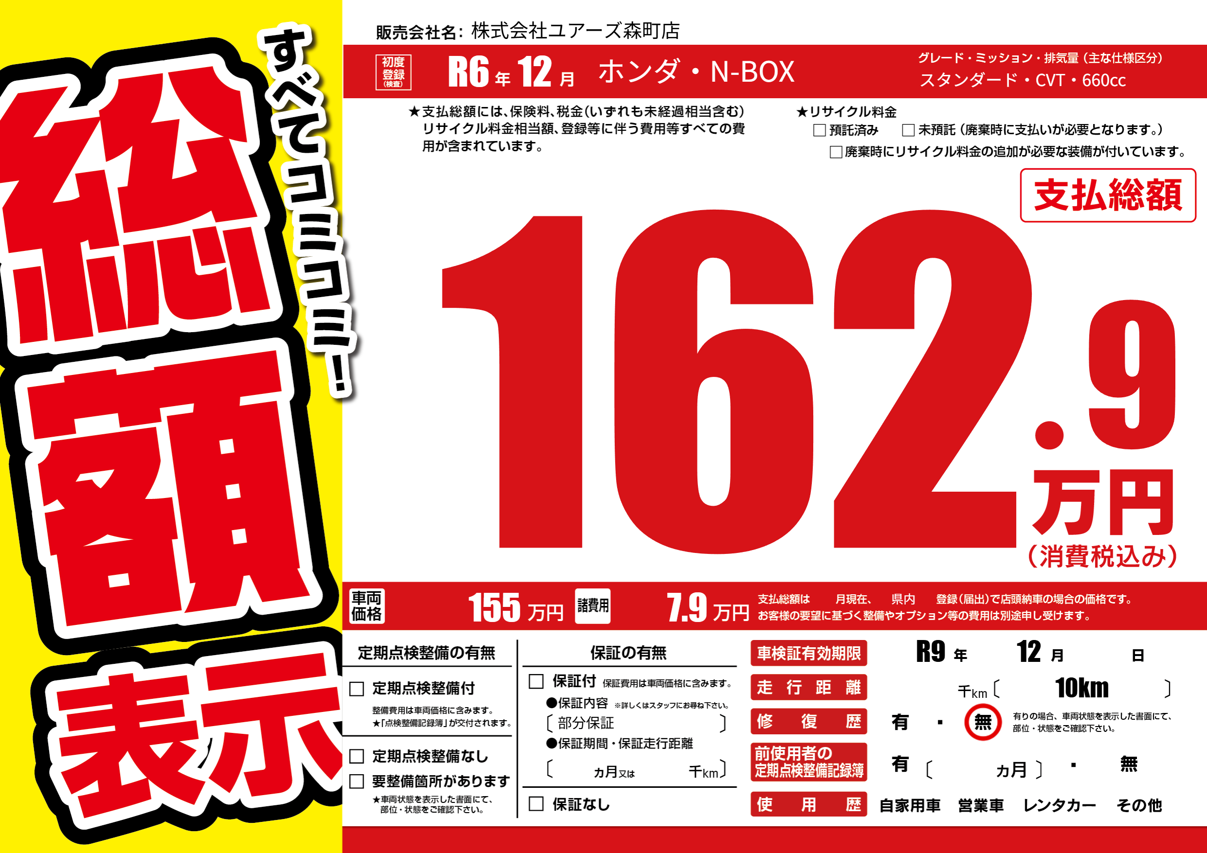 | 走行キロ | - | 初年度登録 | R6年12月 |