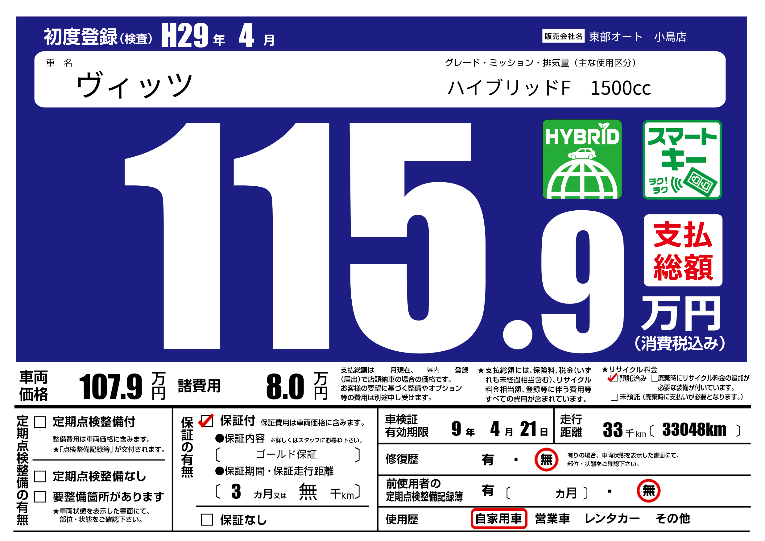 保証付き 保証内容( ゴールド保証) 3ヶ月または(無)千kmまで |