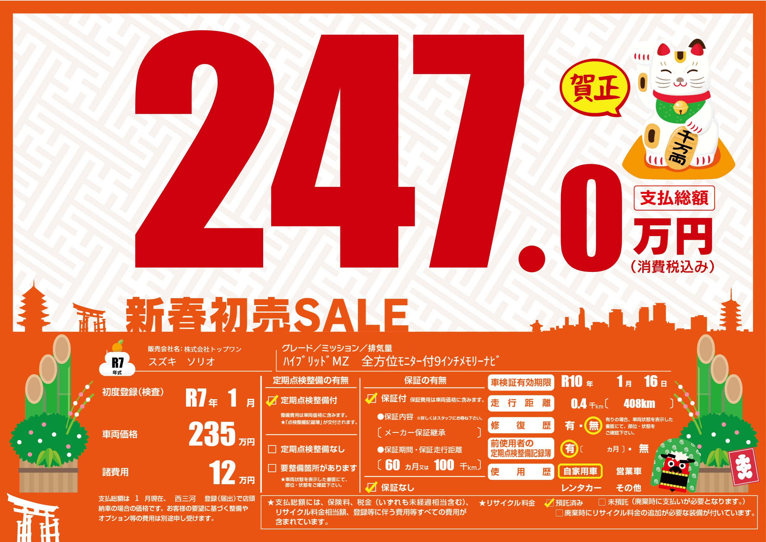| 車検制限 | R10年 1月 16日 | ||