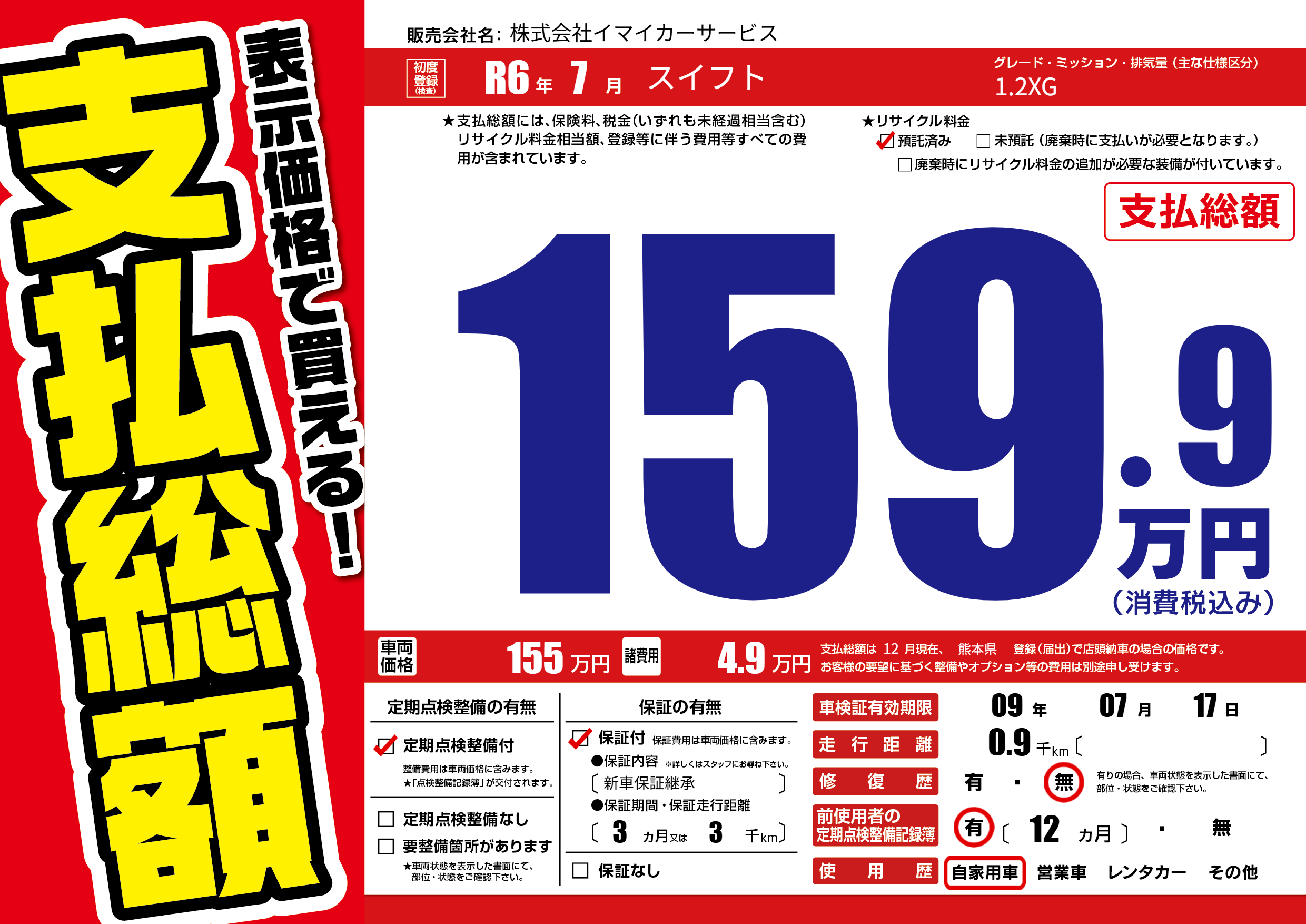 | 走行キロ | - | 初年度登録 | R6年7月 |