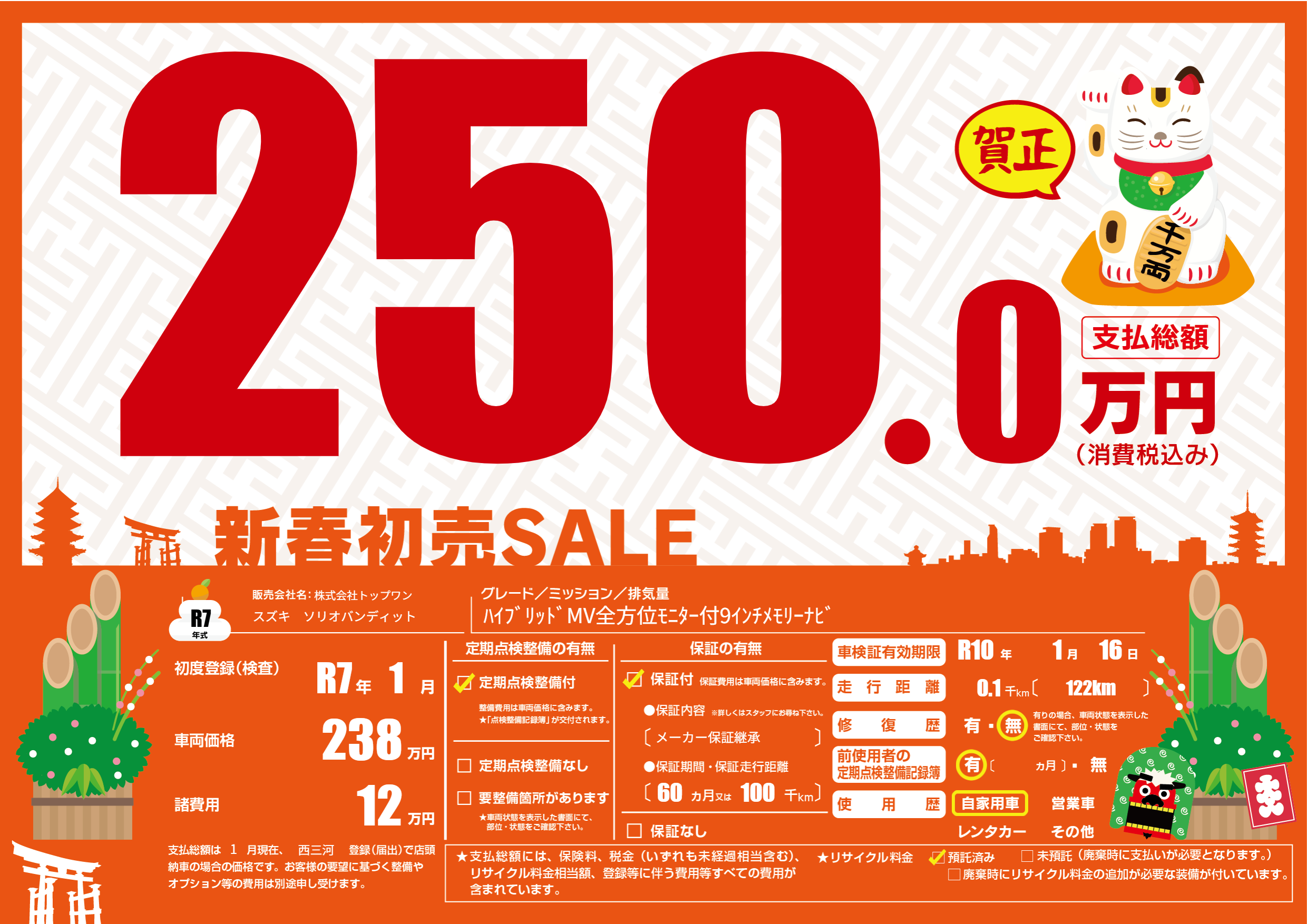 | 走行キロ | - | 初年度登録 | R7年1月 |