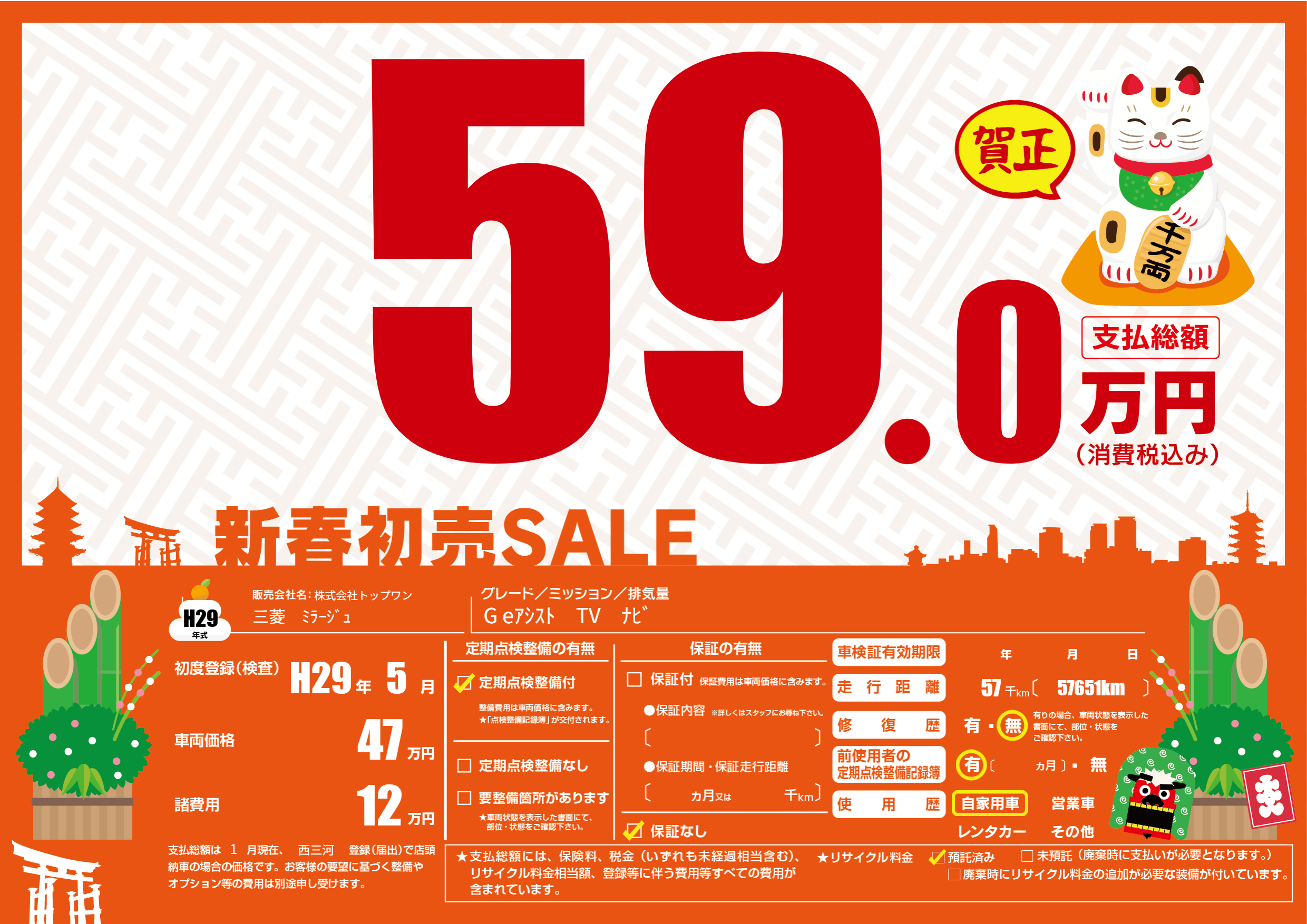 | 走行キロ | 5.7万km | 初年度登録 | H29年5月 |
