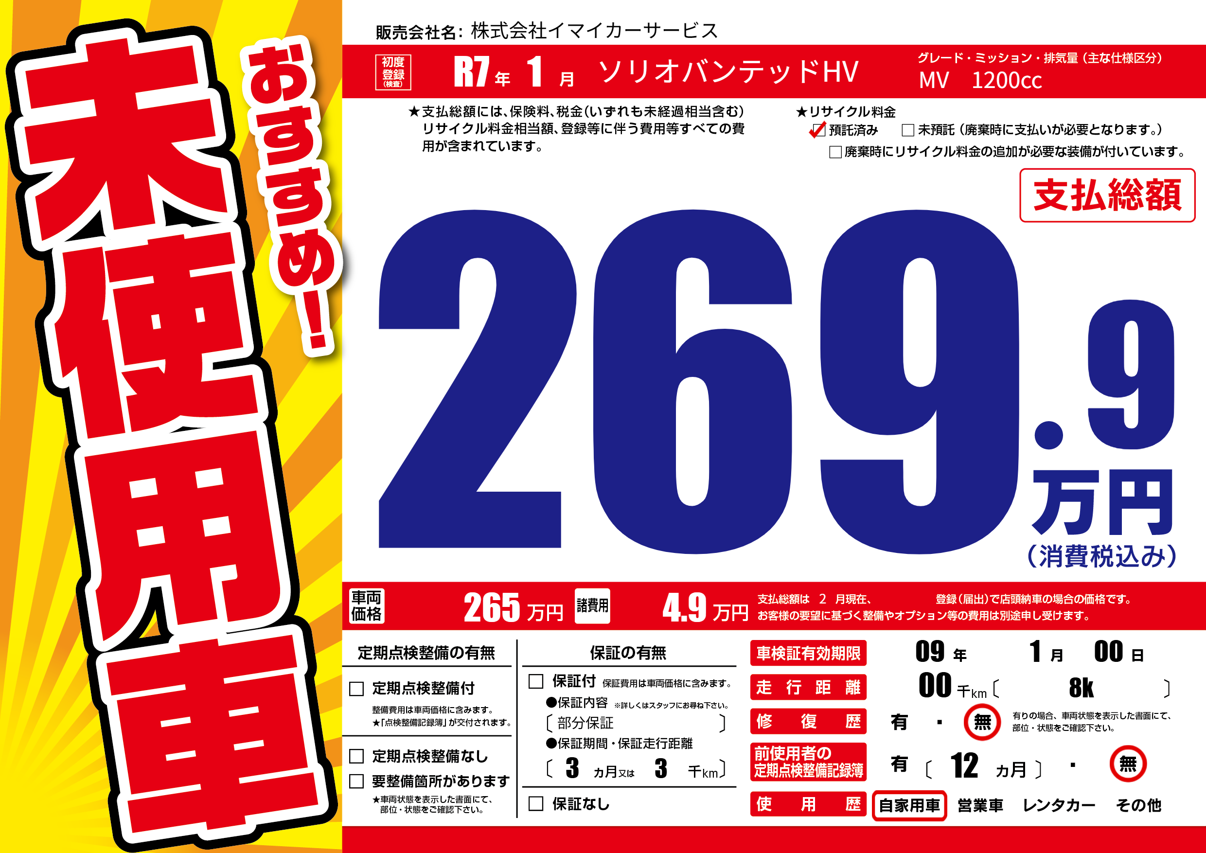 | 車名 | ソリオバンテッドHV | グレード ミッション 排気量 |