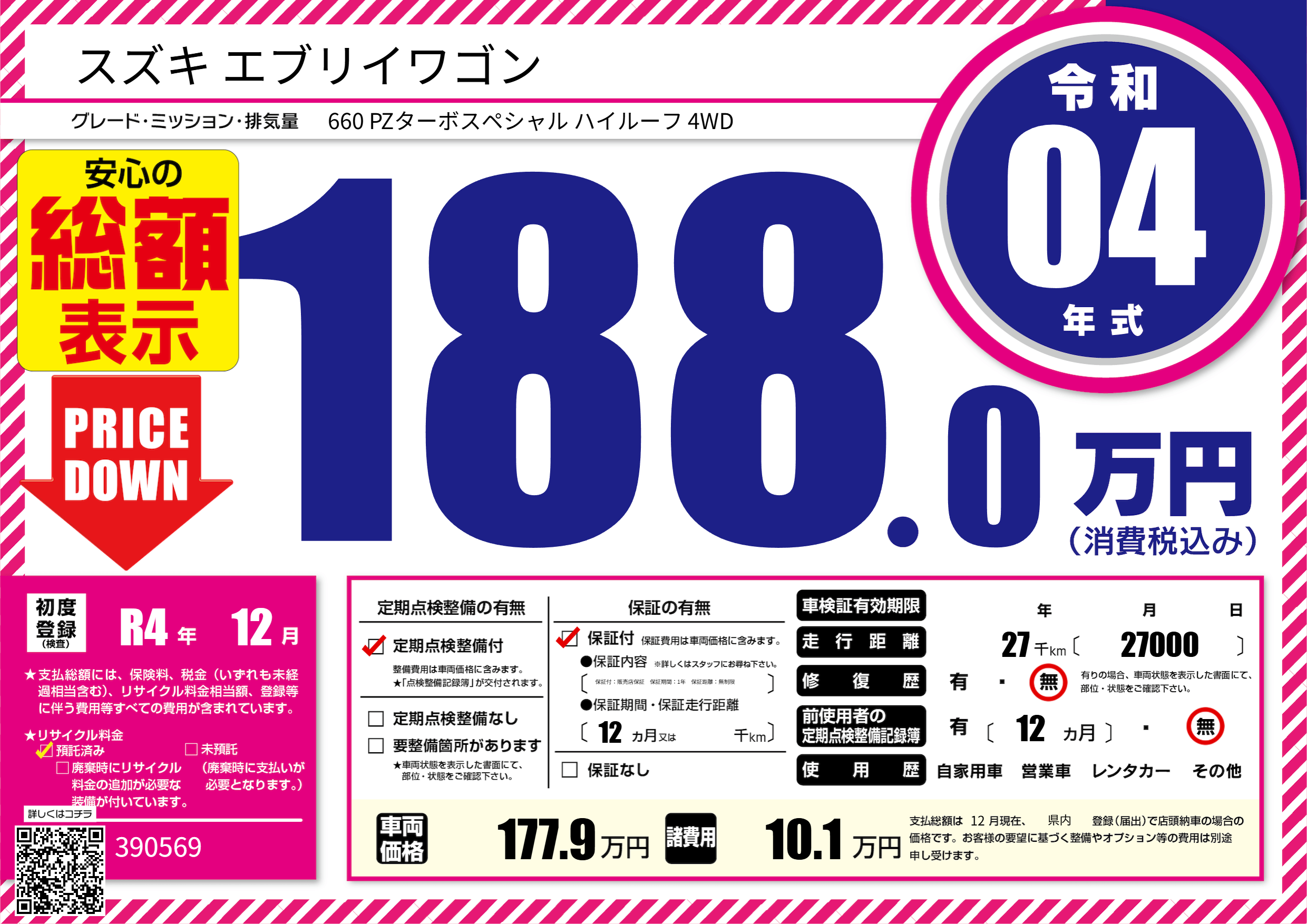 | 走行キロ | 2.7万km | 初年度登録 | R4年12月 |