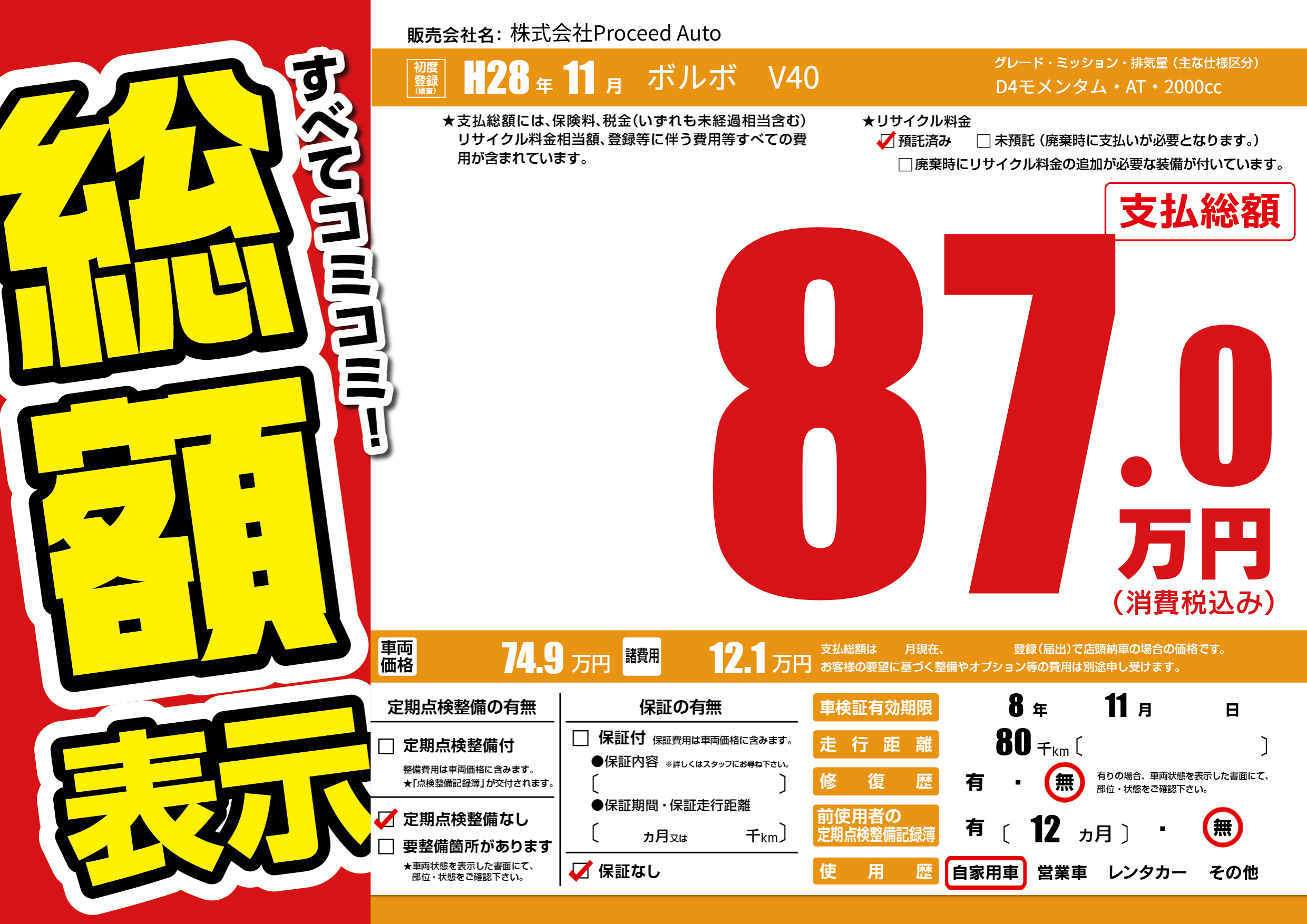 | 走行キロ | 8万km | ||