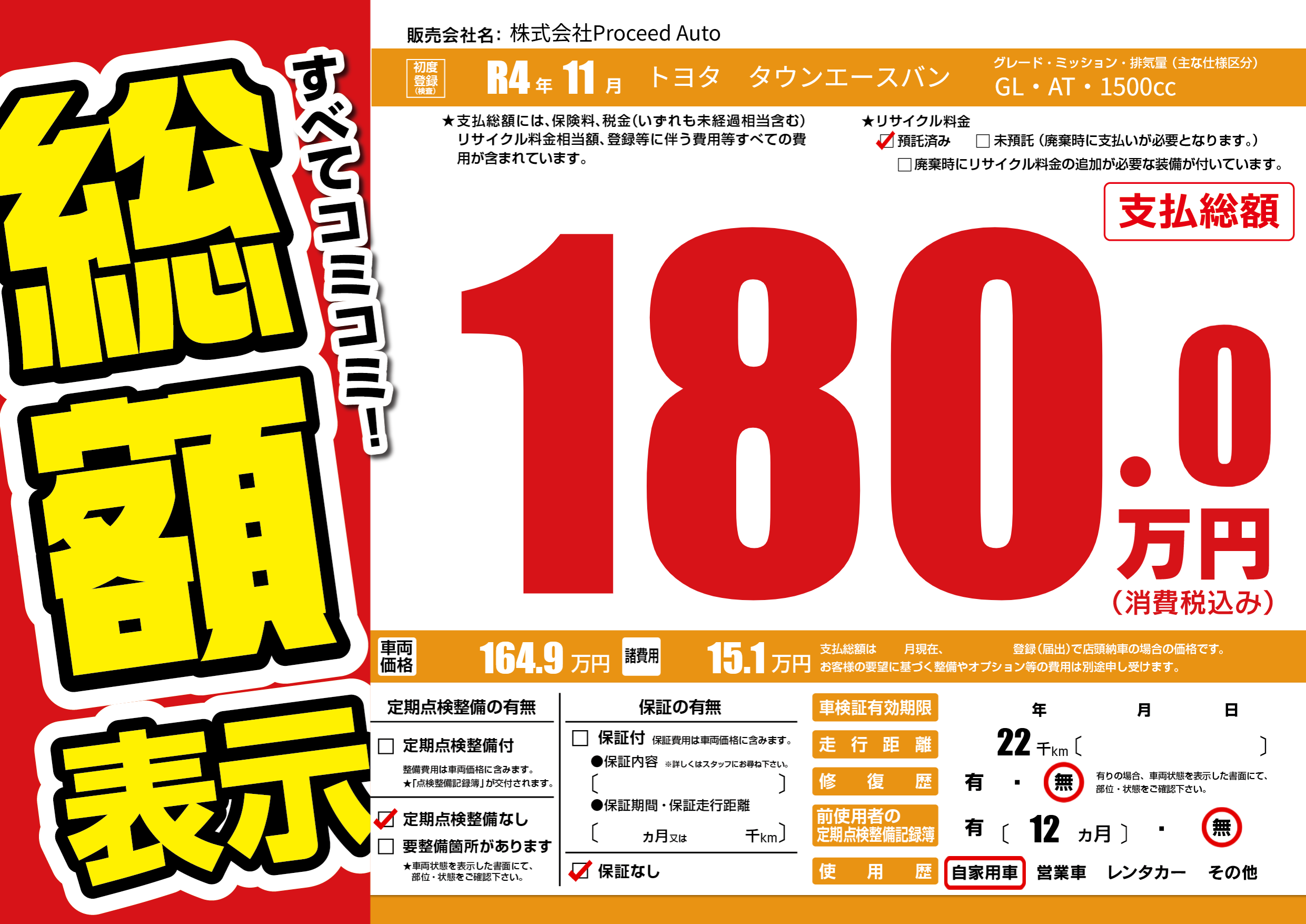 | 車名 | トヨタ タウンエースバン | グレード ミッション 排気量 |