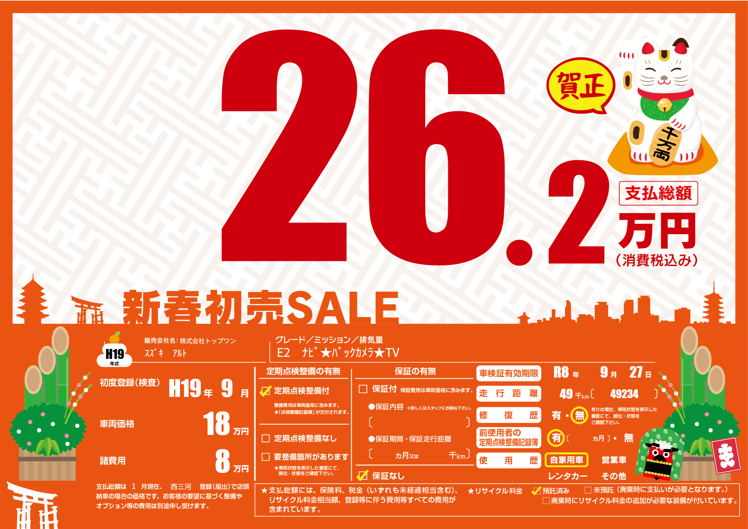 なし | 車検制限 | R8年9月27月 |