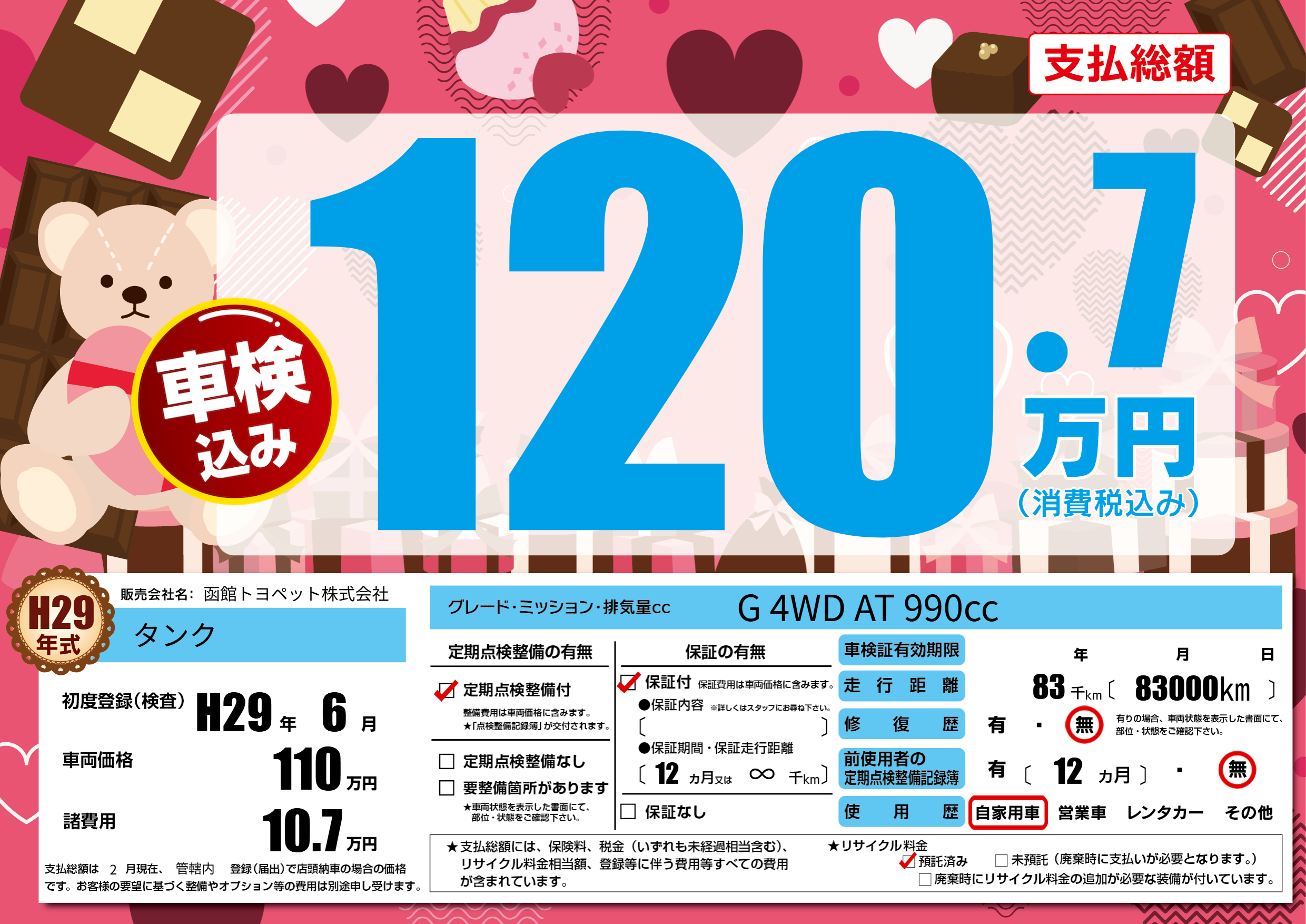 | 走行キロ | 8.3万km | 初年度登録 | H29年6月 |