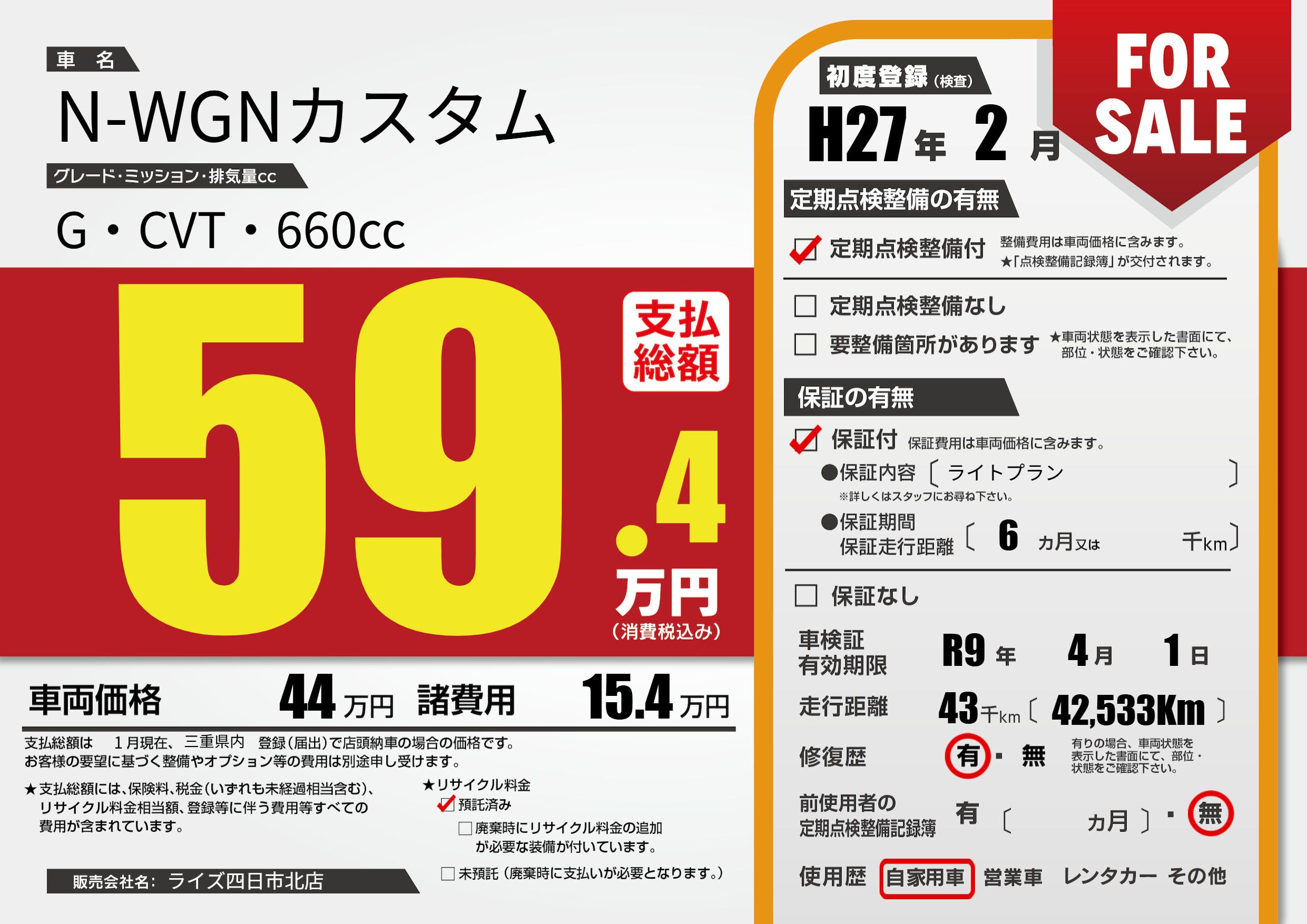 なし | 車検制限 | R9年4月1月 |